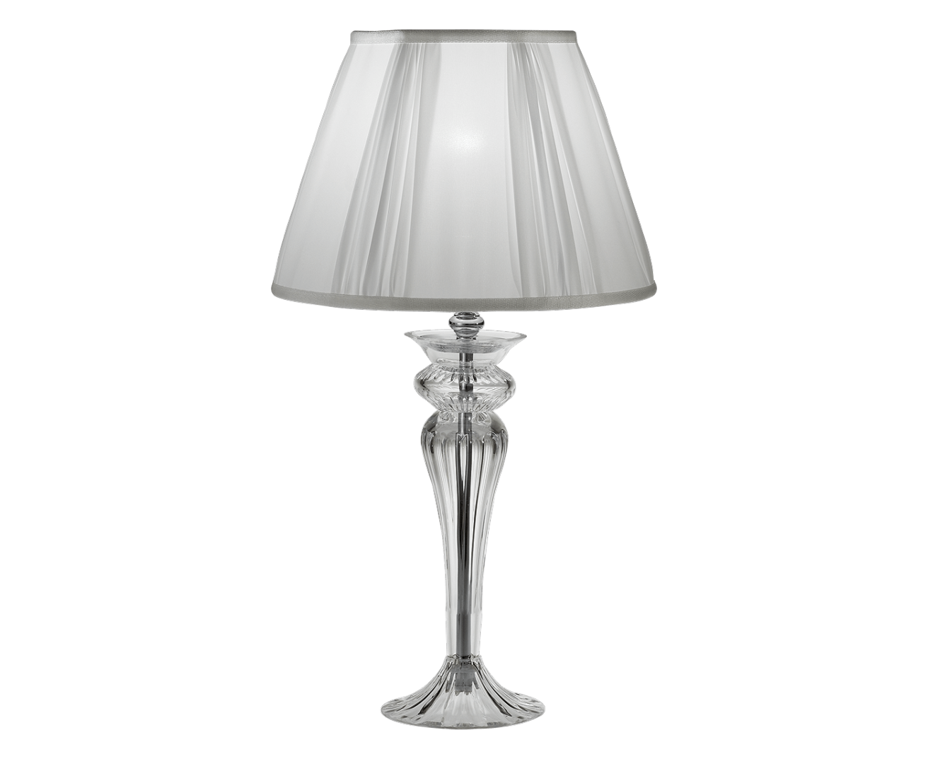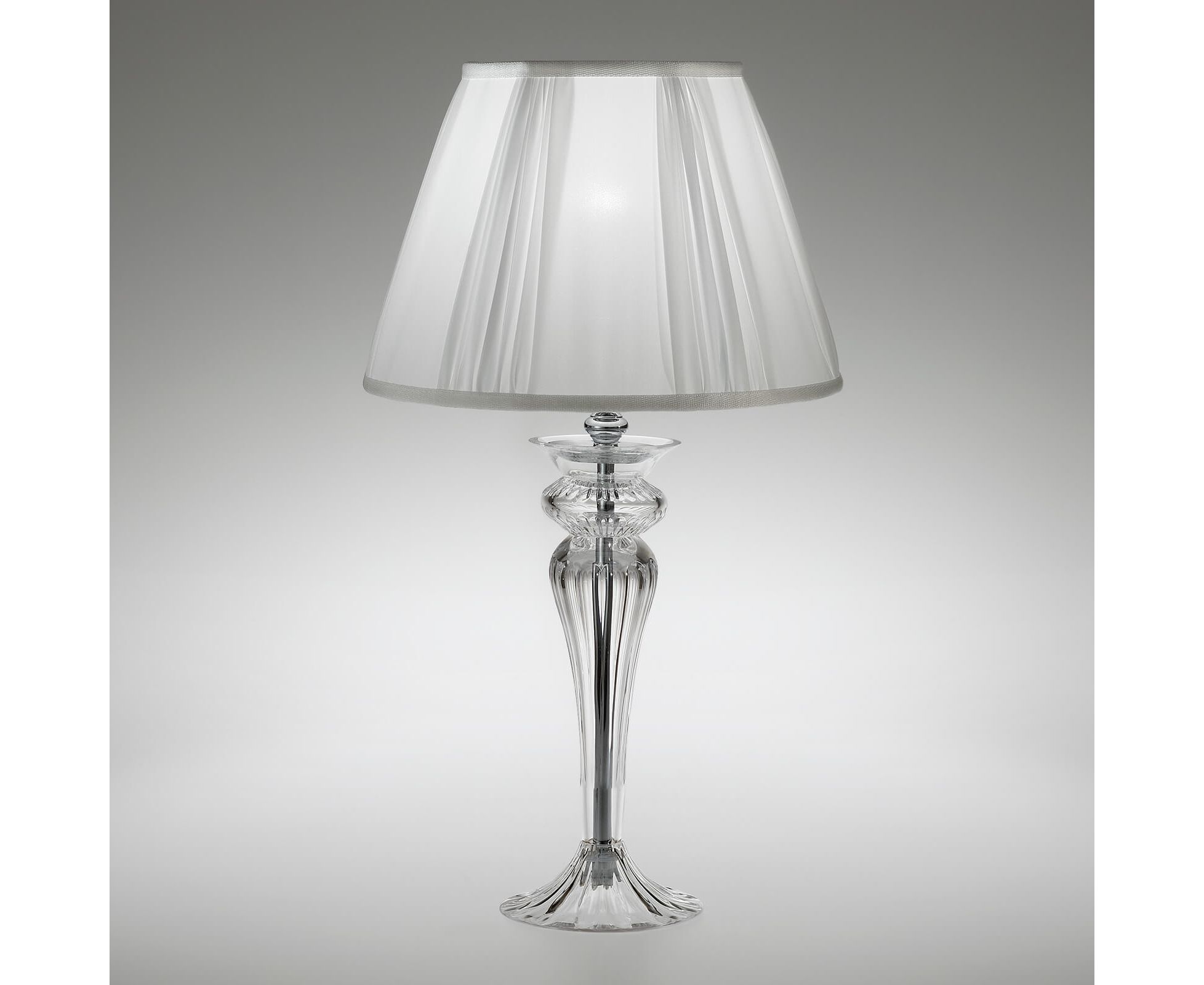 Настольная лампа из резного хрусталя с абажуром из слоновой кости. Металлические детали с никелевым покрытием. Доступны в разных цветах и размерах. Коллекция Opera Classic.