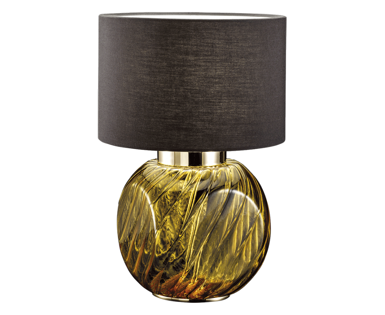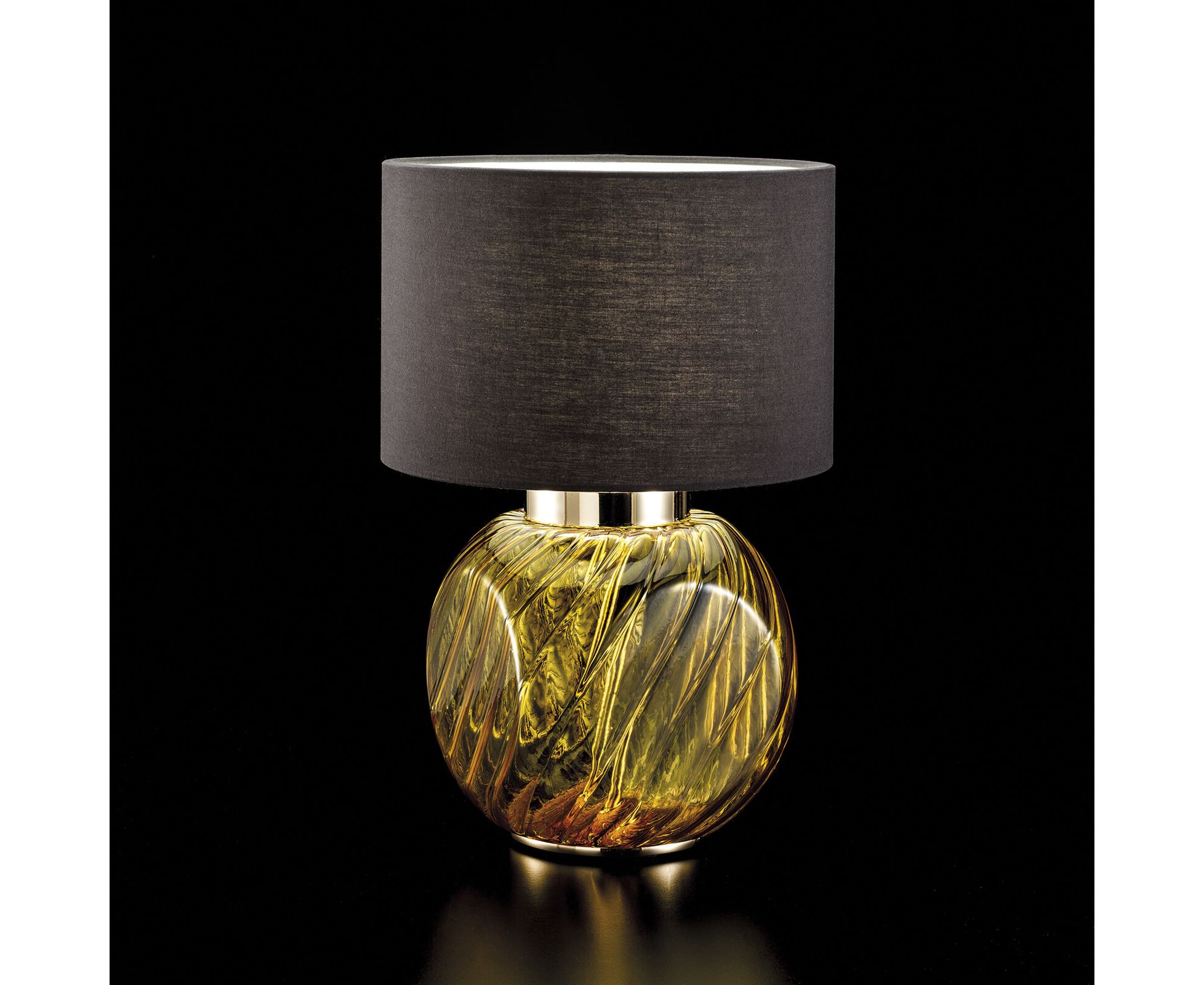 Настольная лампа из выдувного стекла с металлическими деталями из светлого золота и диффузором из ткани. Доступен в разных цветах. Классический каталог Opera.