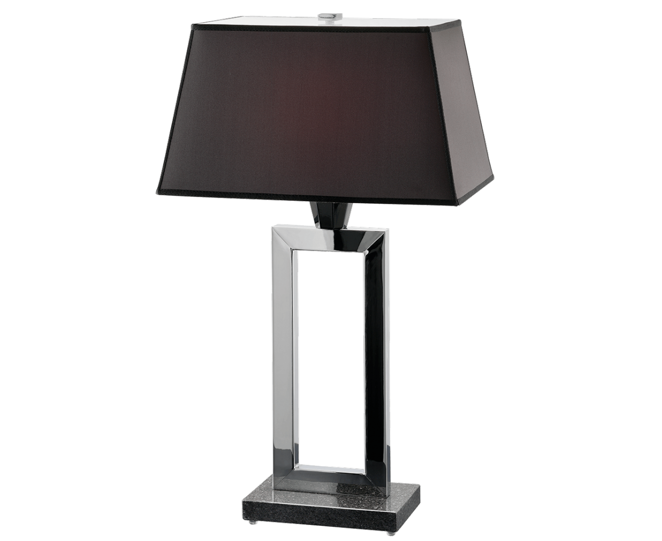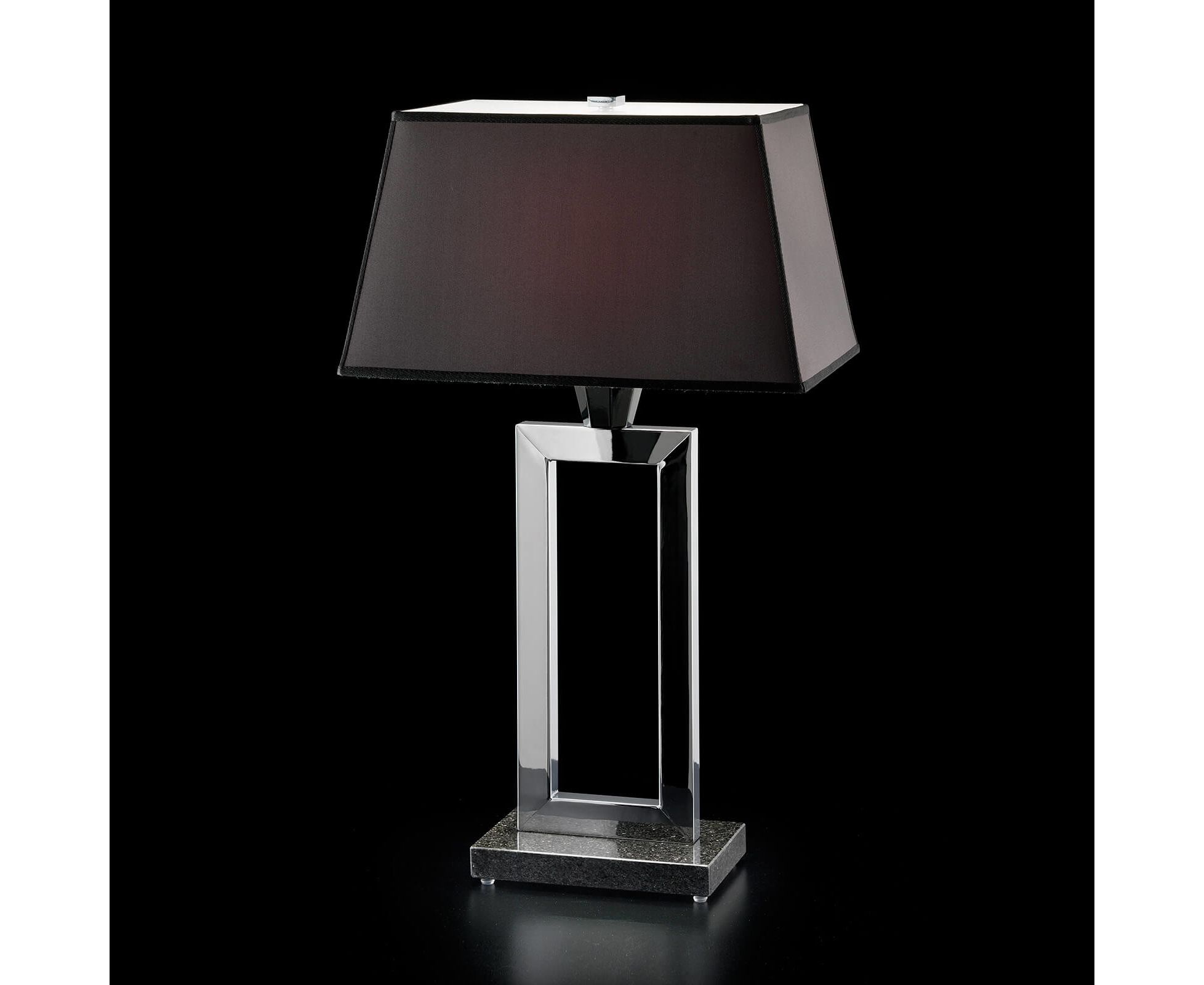 Настольная лампа из металла с хромовым покрытием, детали из черного хрусталя, мраморная основа и черный тканевый абажур. Коллекция Opera Classic.