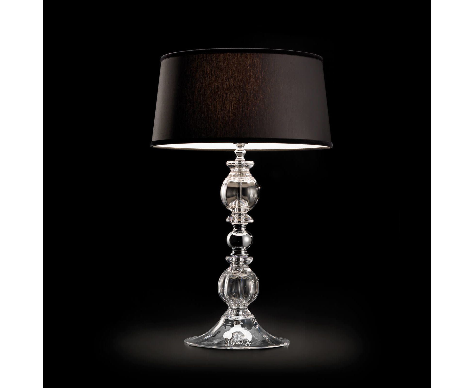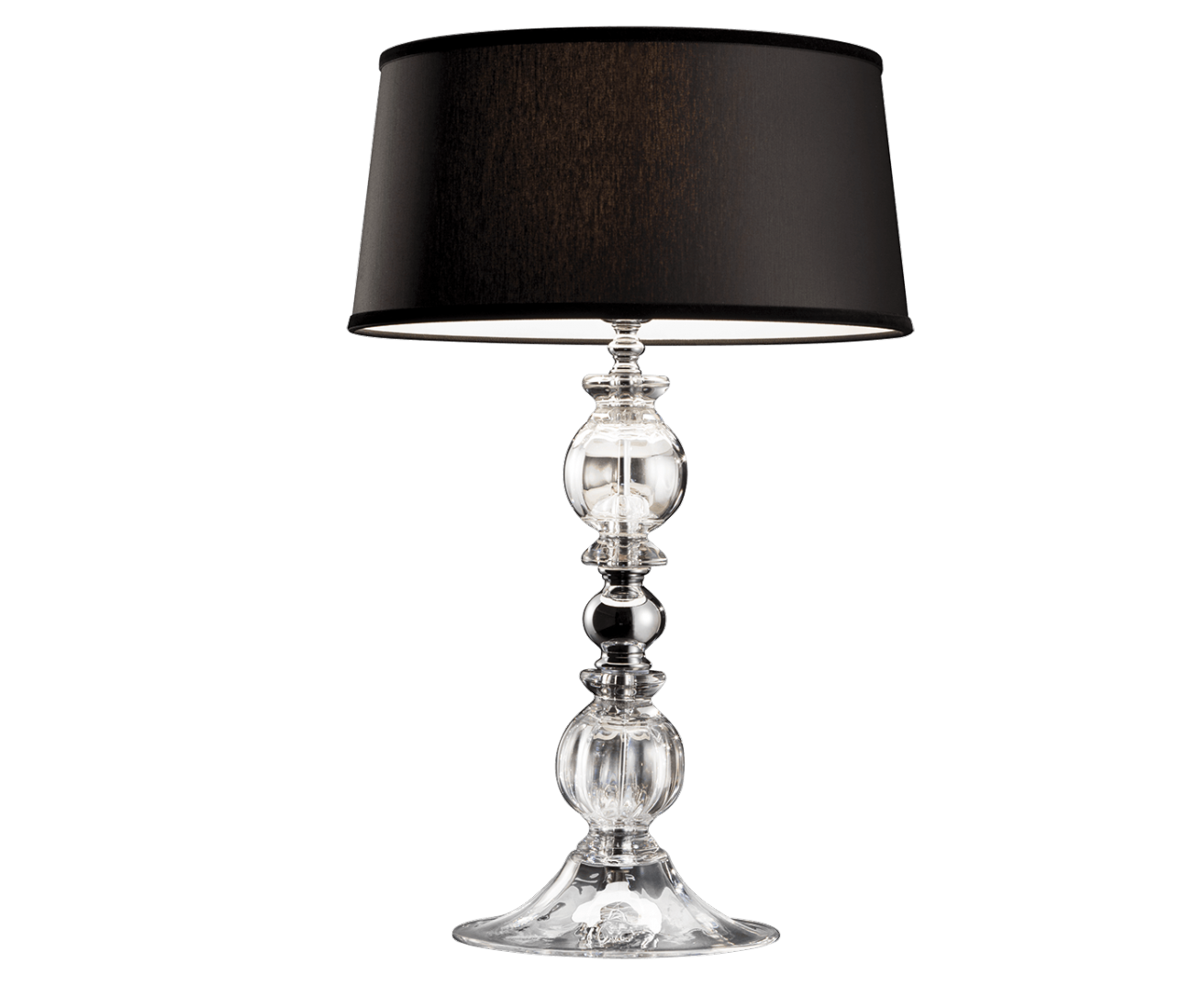 Настольная лампа из хрусталя с хромированными металлическими деталями и черной тканью. Доступны в разных размерах и цветах. Коллекция Opera Classic.