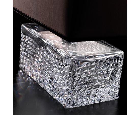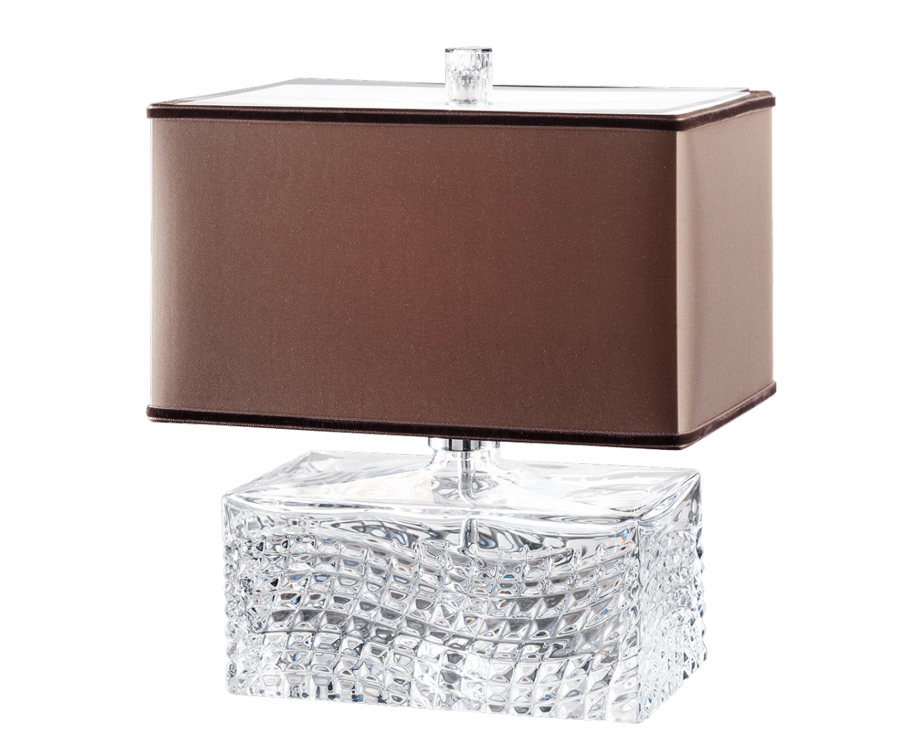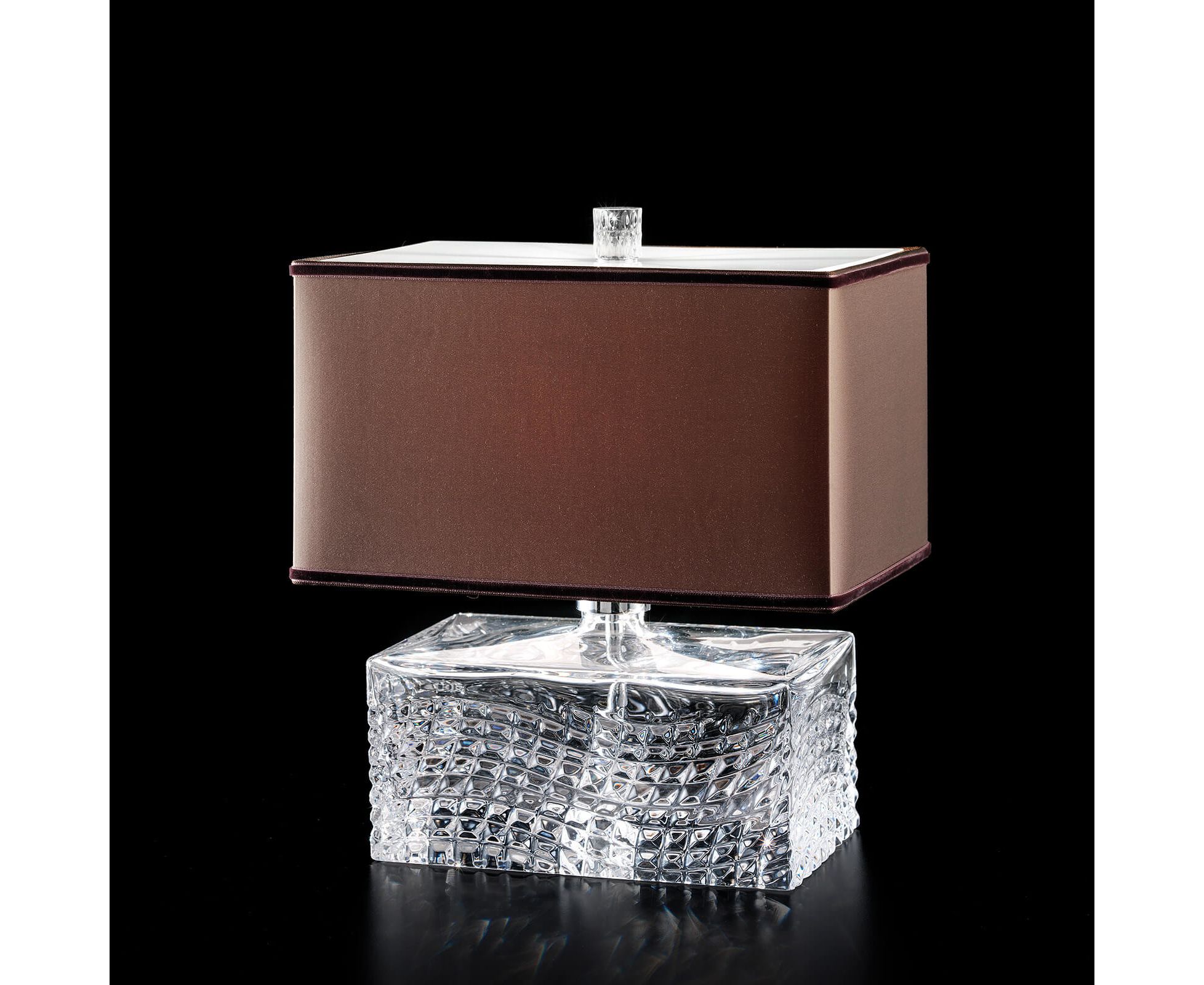 Настольная лампа из прозрачного хрусталя с коричневым тканевым абажуром. Металлические детали с хромированной отделкой. Доступен в разных цветах. Коллекция Opera Classic.