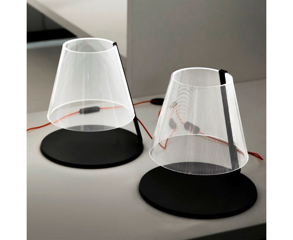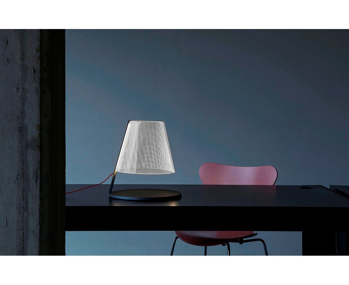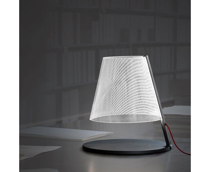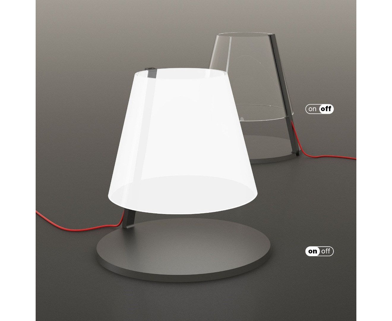 Настольная лампа с рассеянным светом. Свет со специальным эффектом и прозрачный рассеиватель из метакрилата, который становится опалесцирующим при рассеивании света. Конструкция из алюминия в цвете антрацит. Встроенный светодиодный источник света. Электронный драйвер с регулируемой яркостью на вилке.