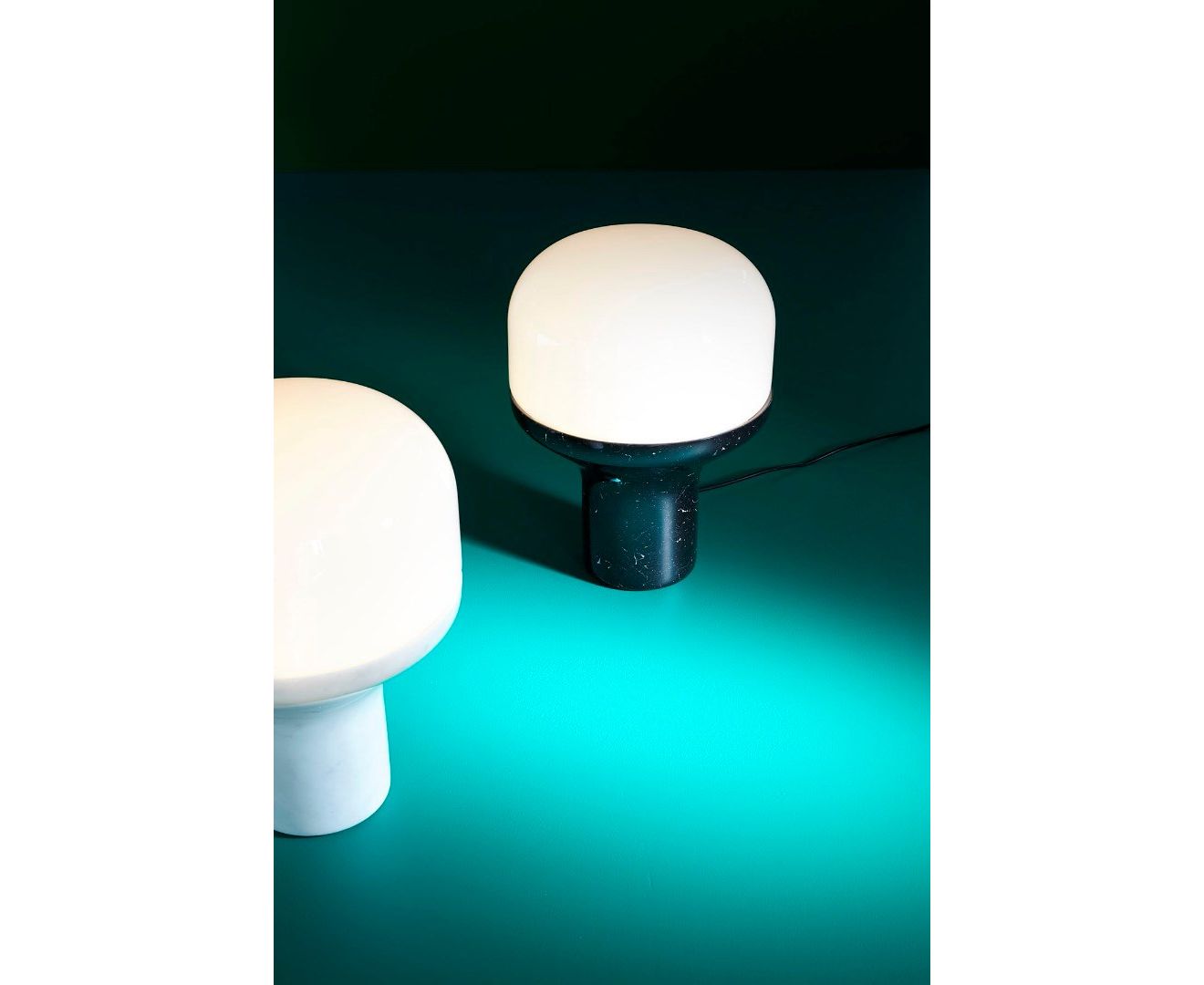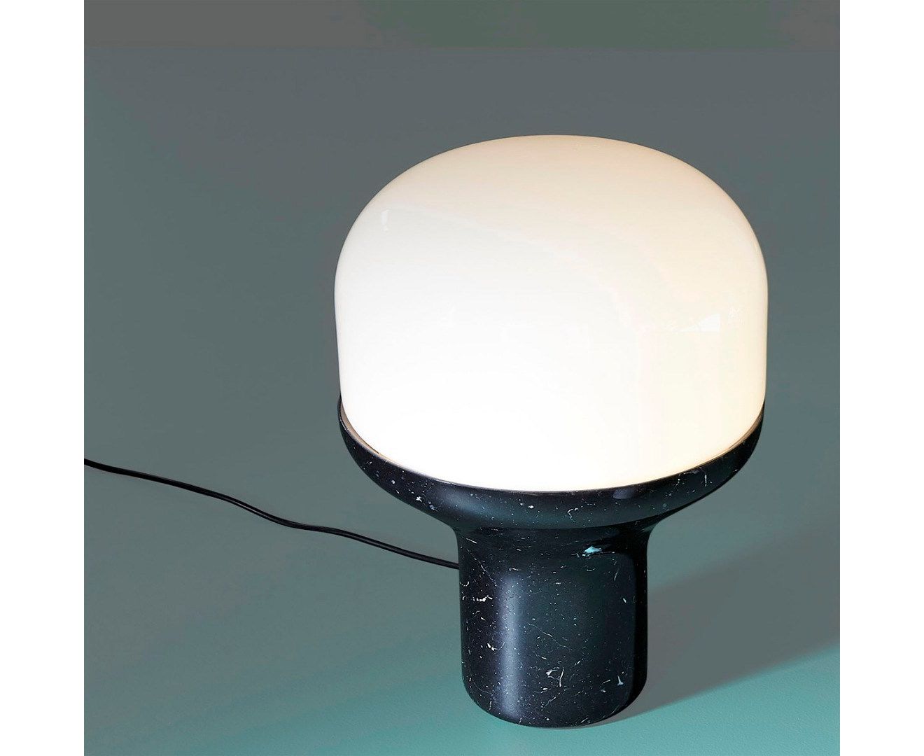 Версия Deluxe под мрамор. Настольная лампа с рассеянным светом. Основание из белого каррарского или черного мрамора Marquina. Рассеиватель из дутого опалового белого стекла. Для светодиодной лампы.