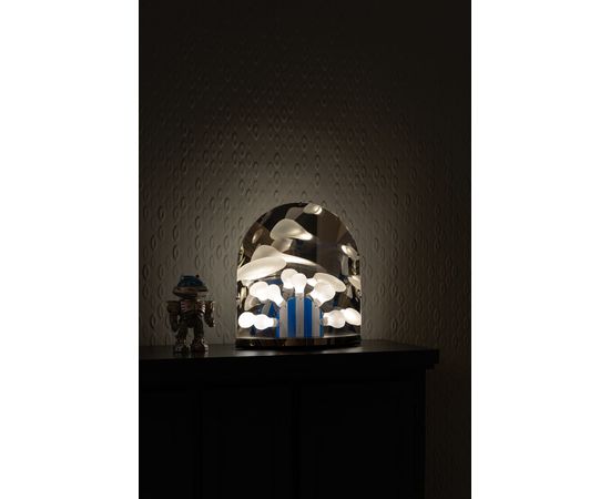 Это зеркало? Это лампа? Это дискотека? Да, это все и даже больше! В настольной лампе Space, разработанной Уордом Вижнантом (Ward Wijnant), есть что-то действительно особенное, чтобы показать вам. Как будто из другого измерения, он хочет адаптироваться к вашей среде. В течение дня он сидит спокойно, его зеркальный вид отражает его окружение. Затем, в темноте ночи, он любит сиять своими таинственными огнями. Обязательно обратите пристальное внимание, потому что, когда это произойдет, его серебряная поверхность станет полупрозрачной, и из его якобы зеркала появится новый мир.