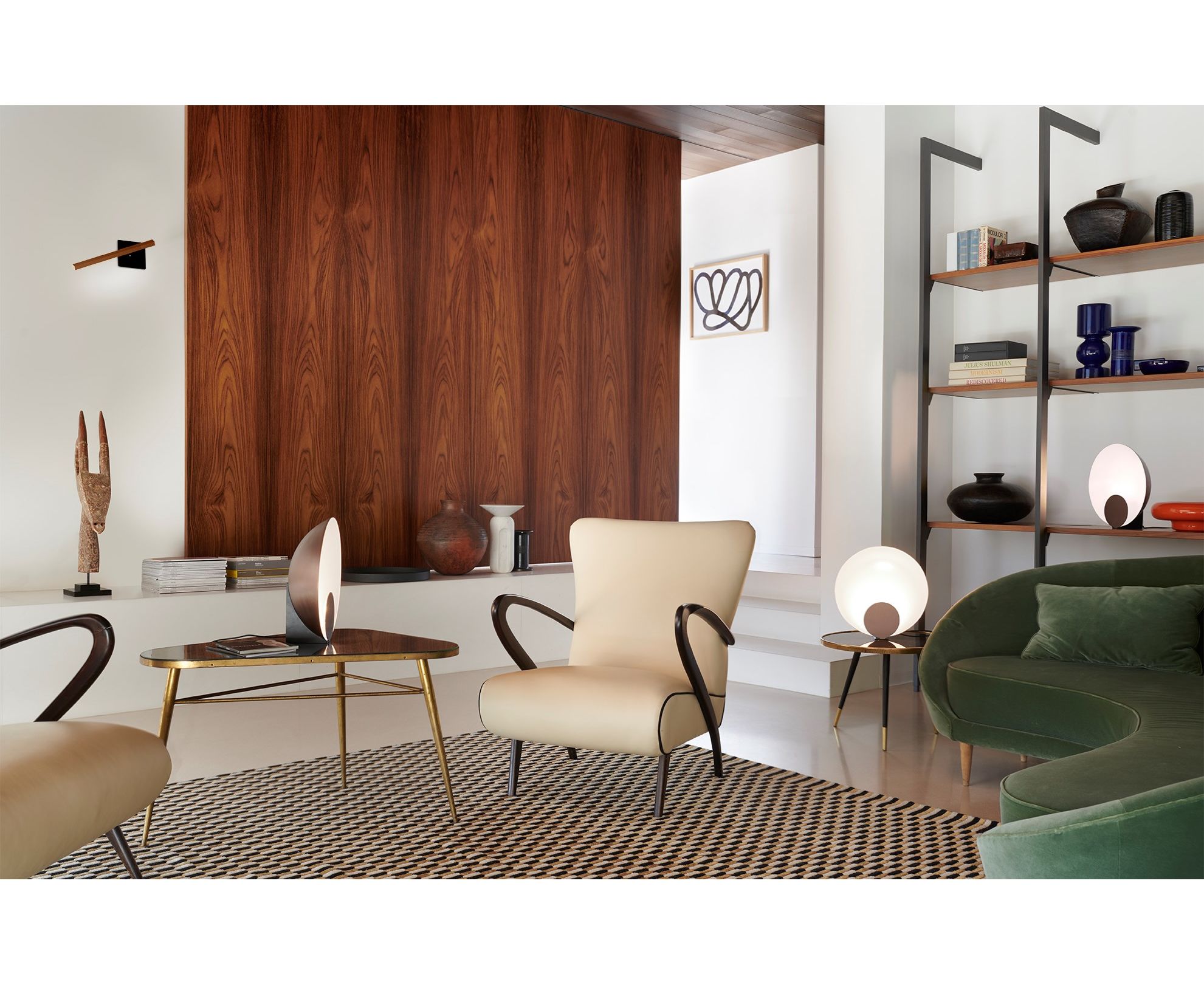 Марта Перла разработала Siro, полусферическую настольную лампу с диском на передней панели, излучающим изнутри наклонный свет благодаря тонкому светодиодному источнику света. При взгляде спереди Siro кажется состоящим из двух двухмерных элементов, создающих иллюзию идеального баланса на поверхности. Он получил свое название от столь типичной для человека необходимости искать в небесных движениях возможные связи между собственным прошлым и космическими явлениями. Отсюда Сиро, происходящее от Сириуса, самой яркой белой звезды в ночном небе. Siro выпускается в двух размерах и двух вариантах отделки: сатинированная бронза или сатинированное золото, при этом внутренняя часть сферы выполнена в белом цвете, что подчеркивает цветовой контраст простым графическим способом.