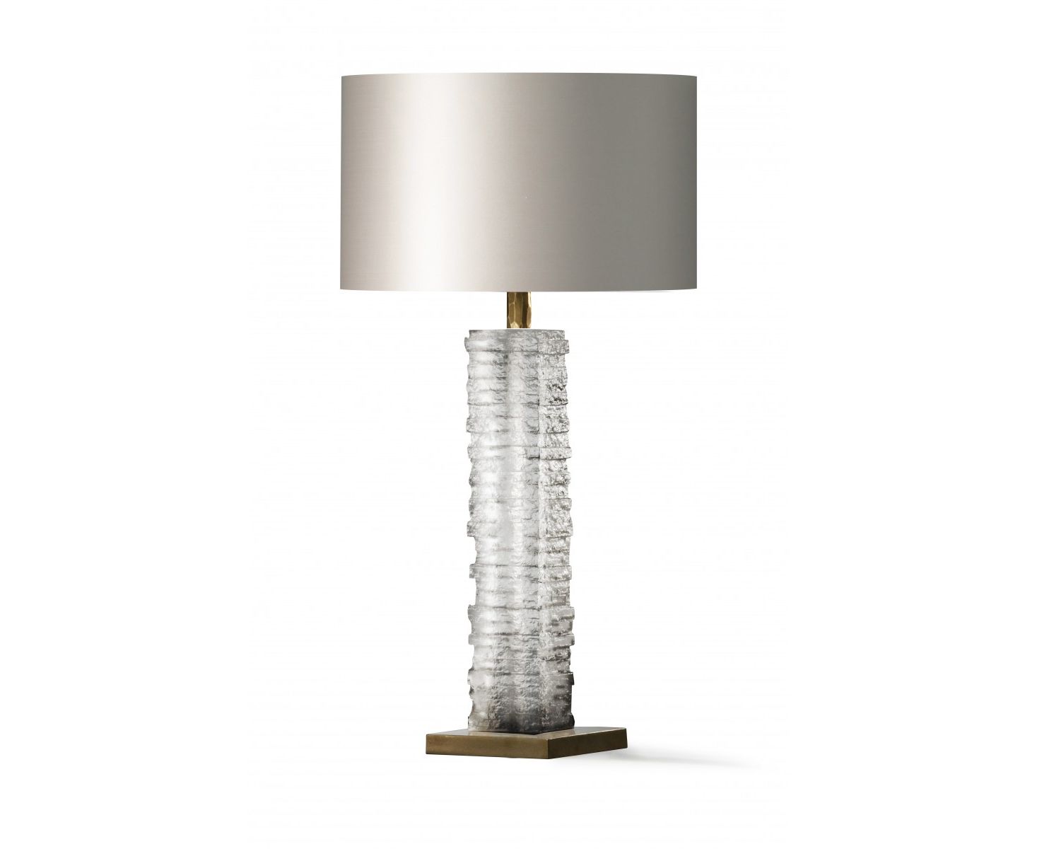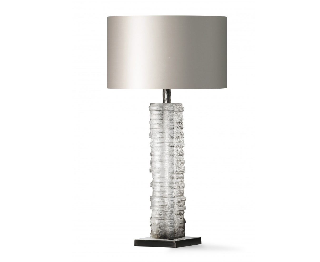 Лампа Crystal Strata Column Lamp построена из великолепного блока литого стекла. Каждый из них индивидуально создан и весит 11 кг! Основание доступно в Antiqued Brass или Nickel, и оно выглядит ошеломляющим в любом дополнении из сказочных шелков абажура.