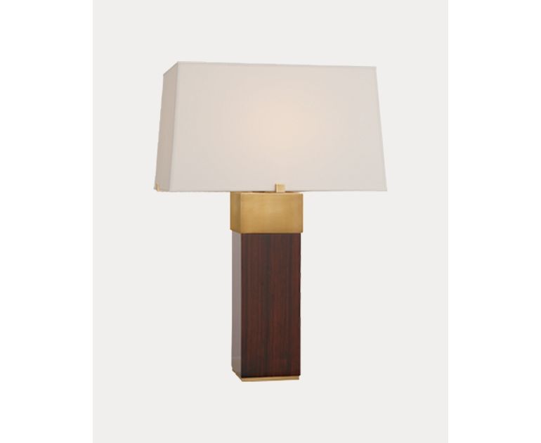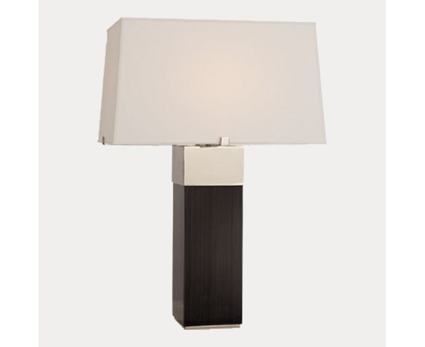 Настольная лампа Hardy основана на сопоставлении материалов, сочетающих натуральное черное дерево с полированными металлическими акцентами. Геометрический абажур усиливает присущую светильнику современность.
