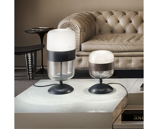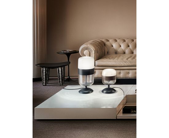 Коллекция подвесных светильников из выдувного стекла представлена в трех эксклюзивных цветах в сочетании с различными вариантами отделки металлическим кольцом. Стекло выдувается из одного целого, но особый процесс ручной работы делает цвет прозрачным в верхней части и рассеивателем в нижней части.