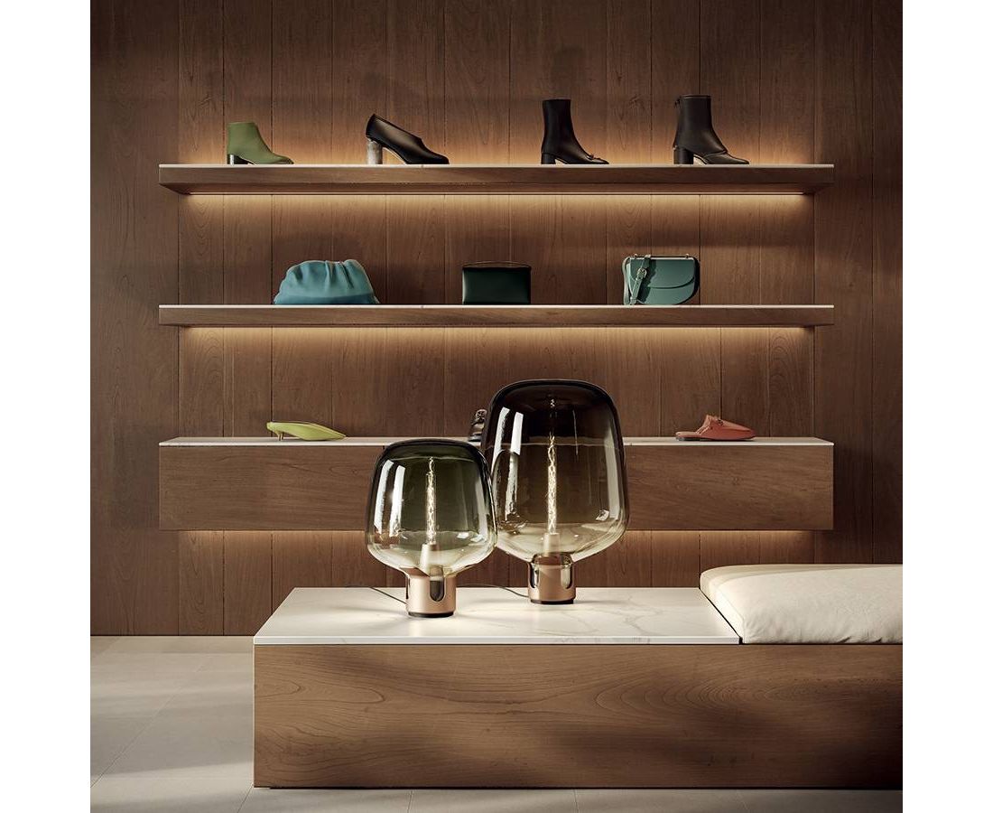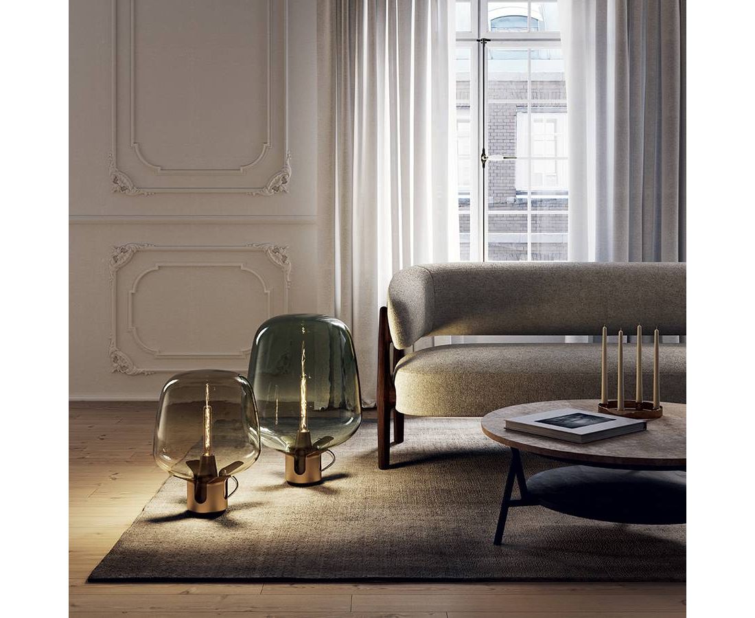Очень простая и одновременно декоративная лампа Flar — это торшер или настольная лампа. Flar имеет округлый стеклянный плафон, окружающий светодиодную лампу накаливания, увеличивающий источник света и рассеивающий теплое, вибрирующее свечение, отфильтрованное стеклом, создающее эффект современной свечи. Стальное основание Flar, раскрывающееся подобно цветку, заключает в себе плафон из дутого стекла. Flar выпускается в двух вариантах размеров: Large высотой 62,5 см и Medium высотой 47 см.