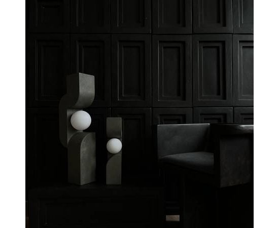 Напоминающий силуэт сидящего человека, SITTING MAN представляет собой световую скульптуру с освещающей стеклянной сферой, расположенной в середине спиралевидной композиции. Сложная конструкция представляет собой отлаженный баланс между структурой и весом, эстетикой и функциональностью, с попыткой бросить вызов нашему восприятию формы и света. При выключении керамический материал приобретает тот же оттенок. Но при освещении структура отражает свет в разных направлениях SITTING MAN бывает двух размеров: торшер и настольная лампа.