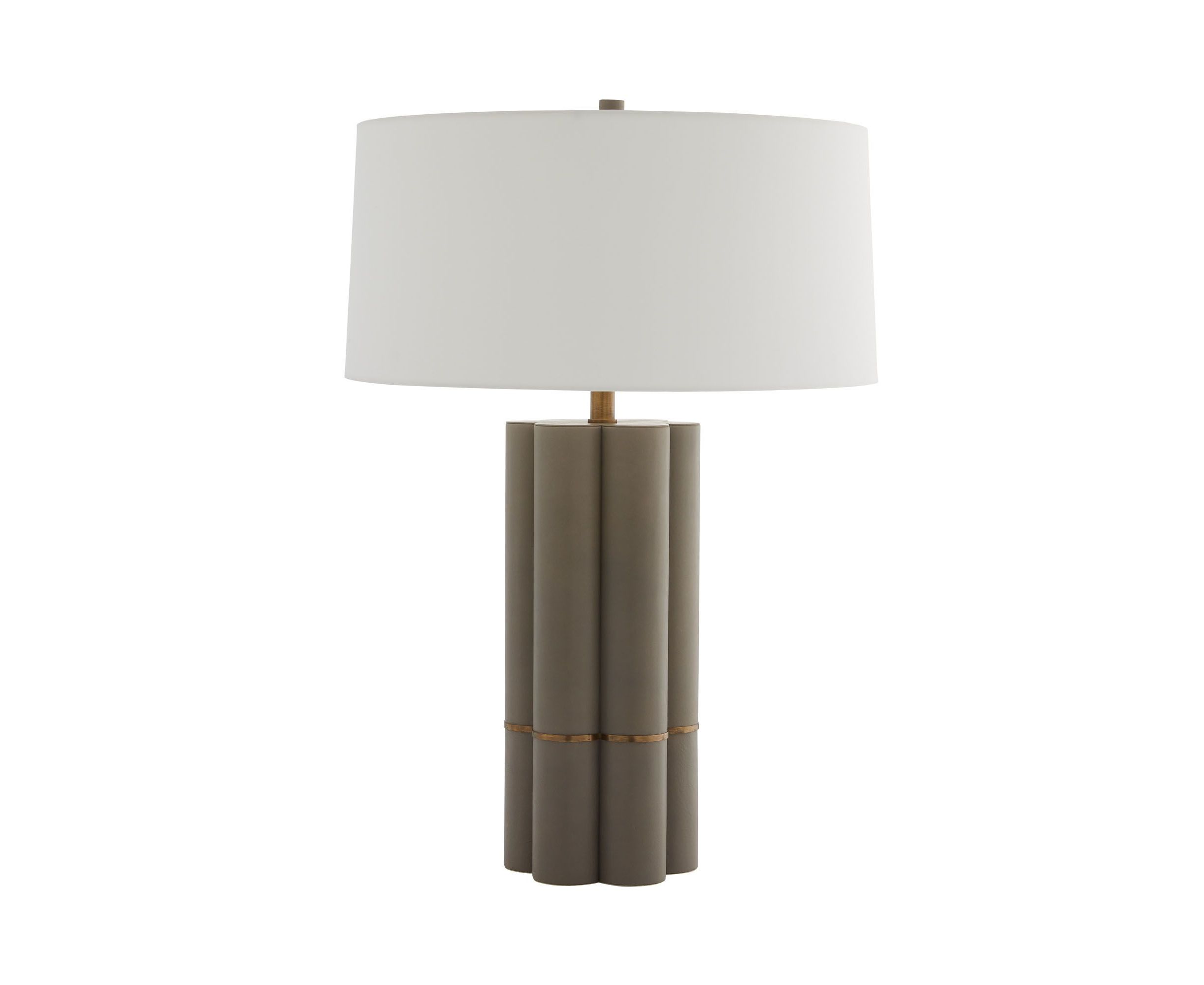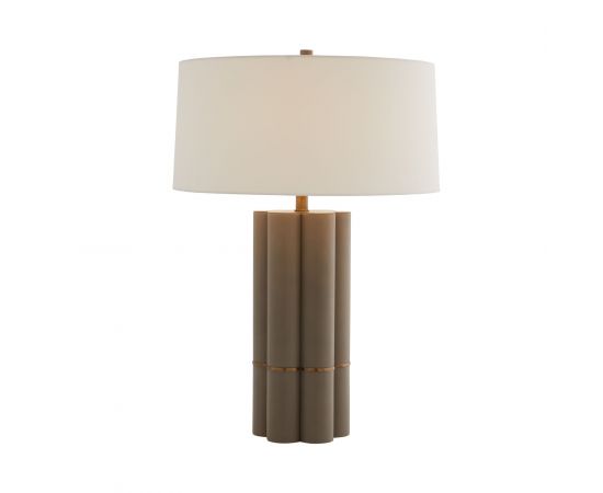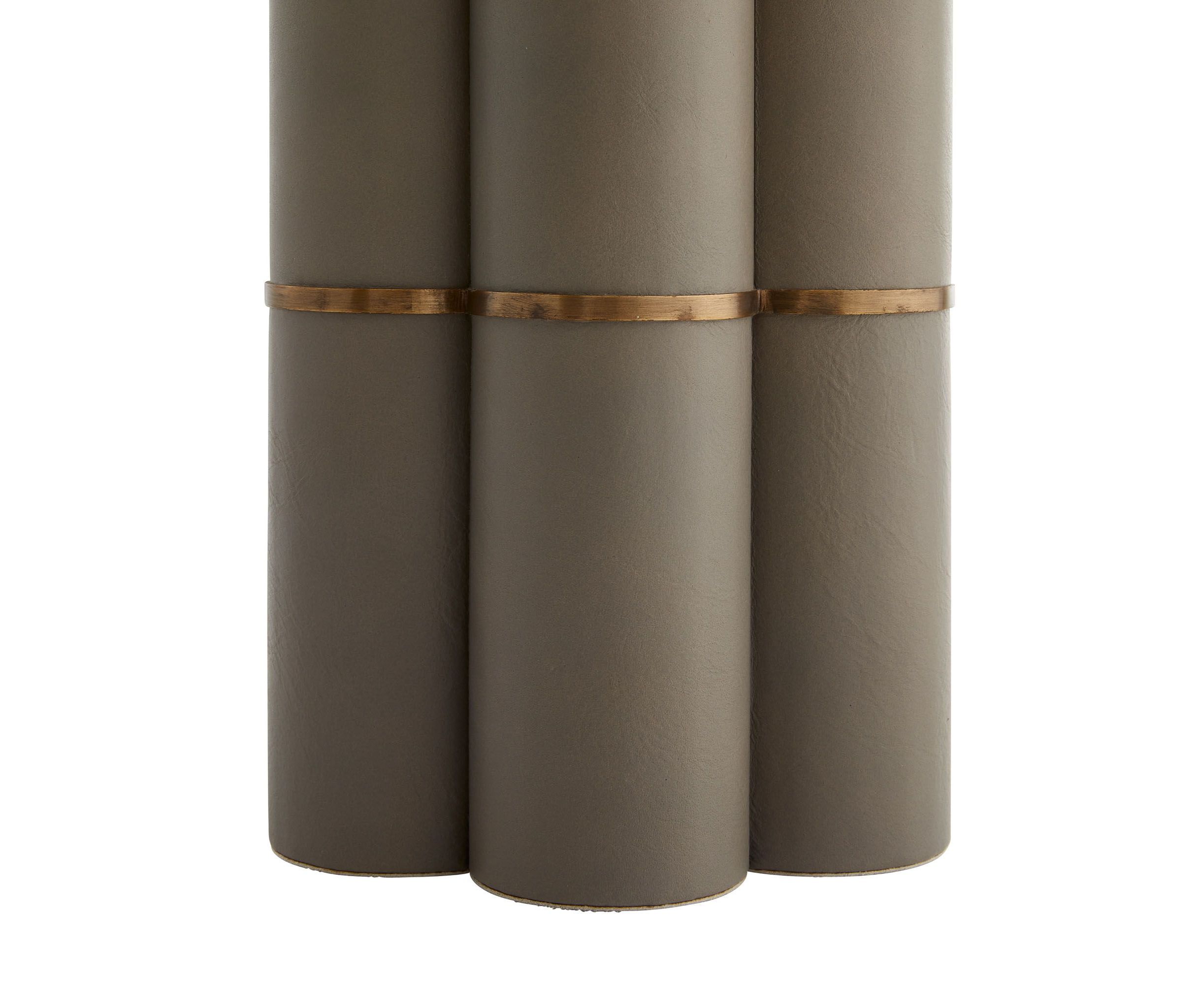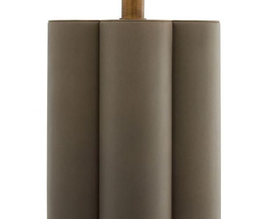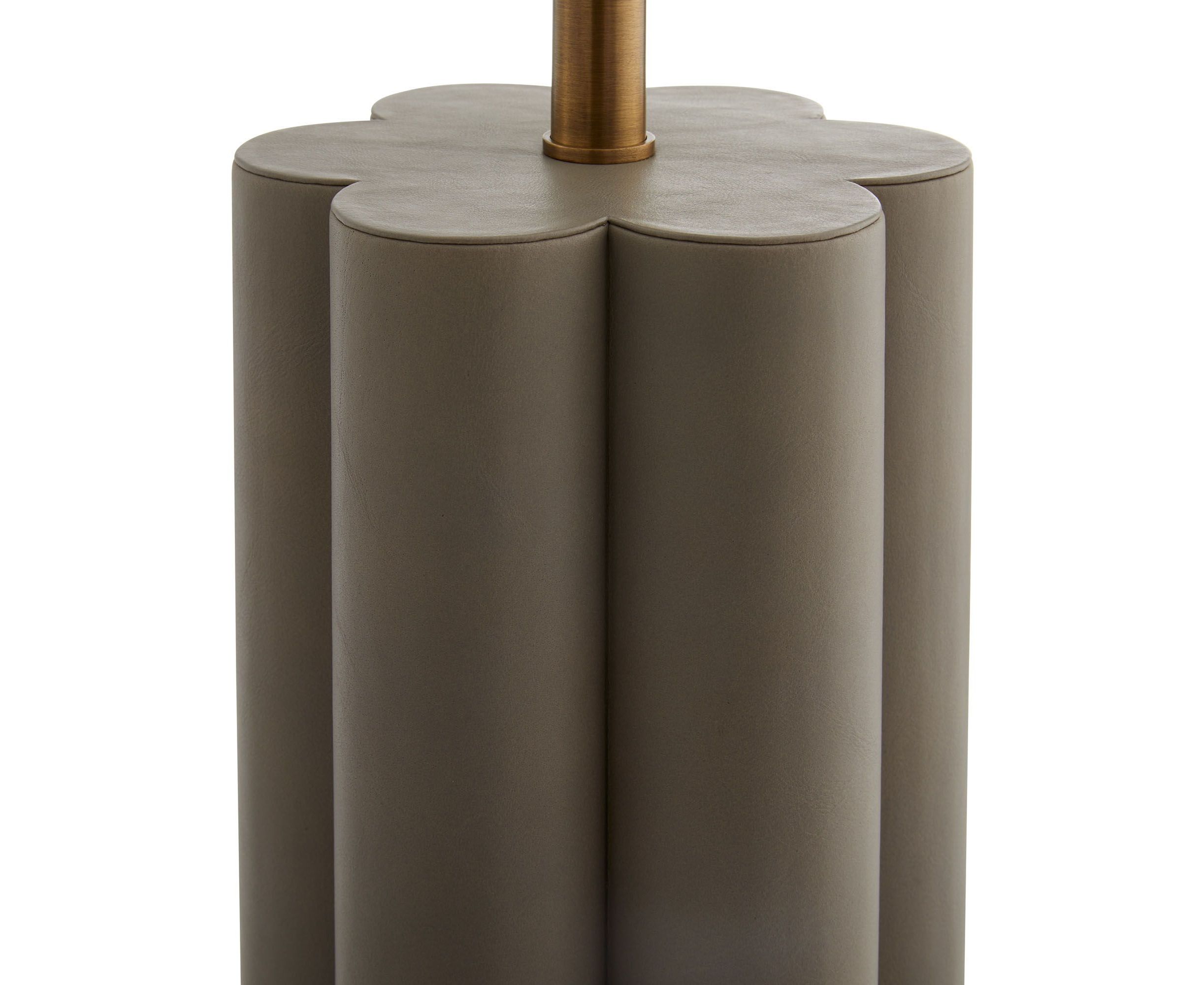 Уникальная зубчатая форма колонны Maddie черпает вдохновение в классической скульптурной форме. Кожаная конструкция дополнена тонким старинным латунным ремешком, который подчеркивает и привлекает внимание к его нетрадиционной, но изысканной форме. Сверху - белоснежный барабанный абажур из микрофибры с белоснежной хлопчатобумажной подкладкой и соответствующим кожаным цилиндрическим навершием.