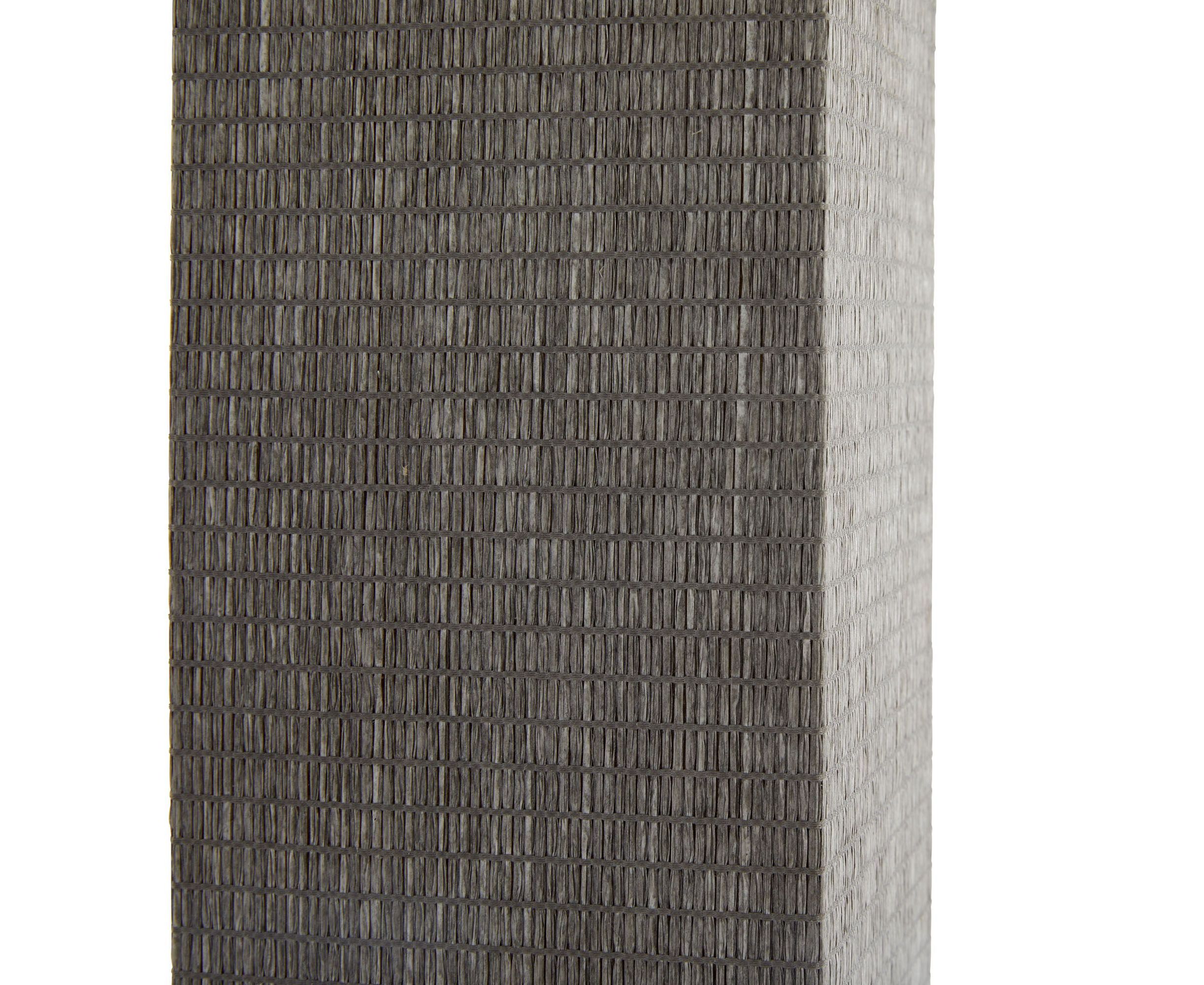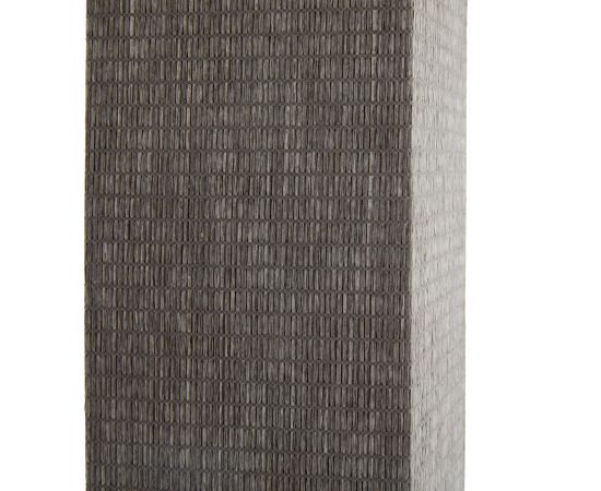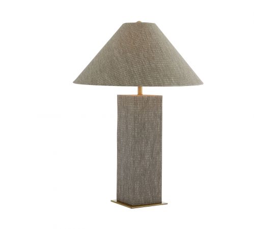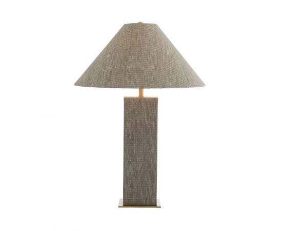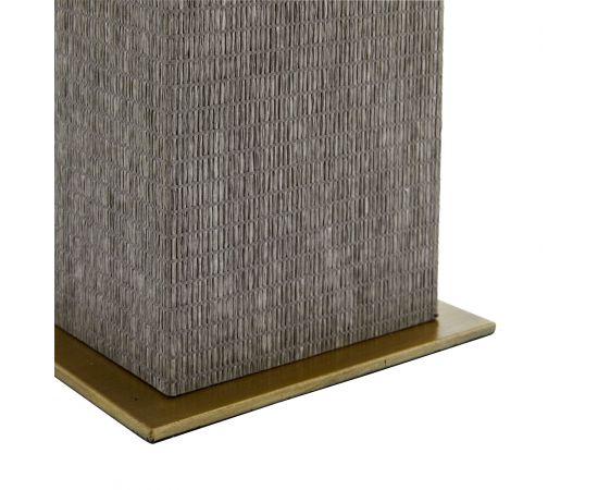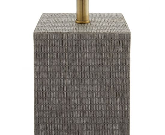 Napa сочетает в себе современный стиль баухаус благодаря своей геометрической форме и конструктивистскому вдохновению. Плетеное квадратное основание колонны украшено изысканной оберткой из серой травяной ткани. Эта лампа увенчана заостренным серым абажуром из травяной ткани с белой хлопчатобумажной подкладкой и античным латунным сферическим навершием.