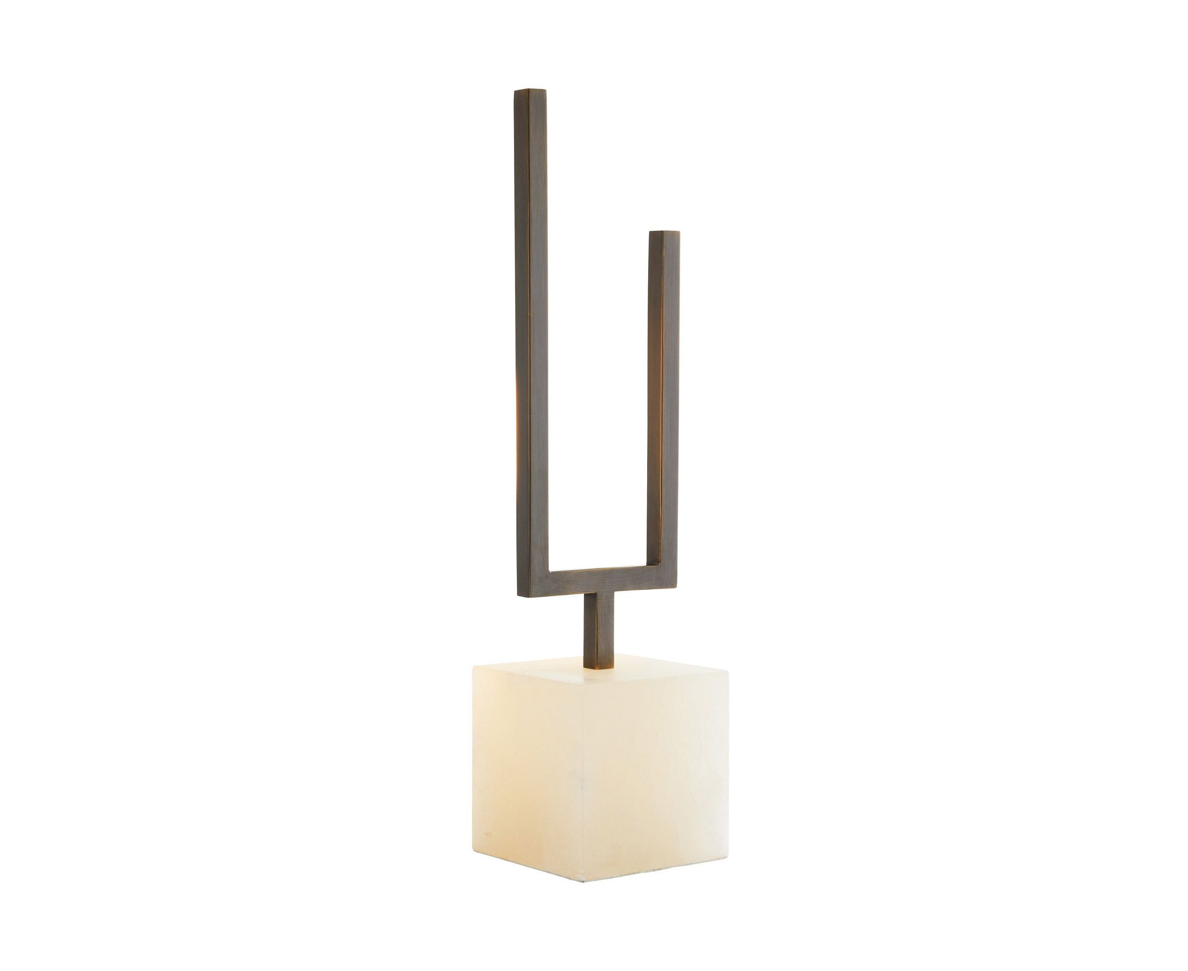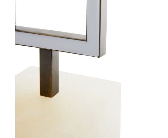 Odell предлагает богатые материалы в современном геометрическом стиле. Минималистский профиль изготовлен из английского бронзового железа в асимметричной U-образной форме, которая скрывает светодиодную ленту, проходящую по раме. Профиль выставлен на белом алебастровом основании. При освещении белый акриловый рассеиватель смягчает свечение и создает эффектную подсветку.