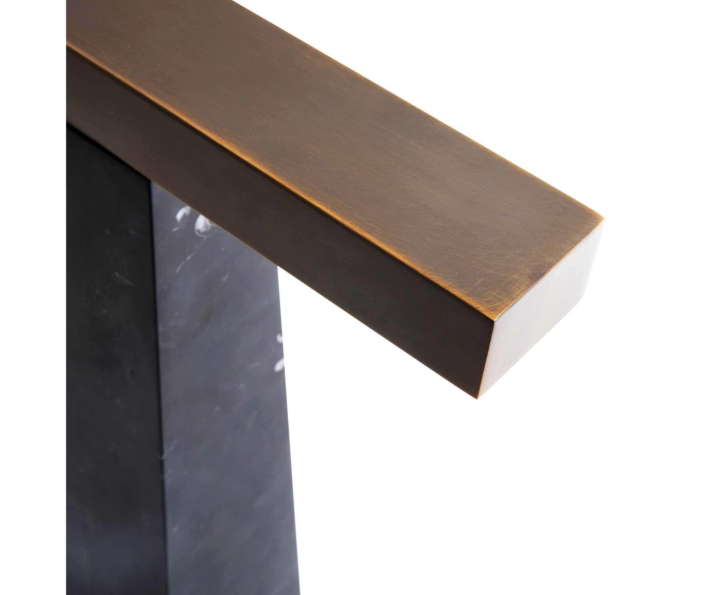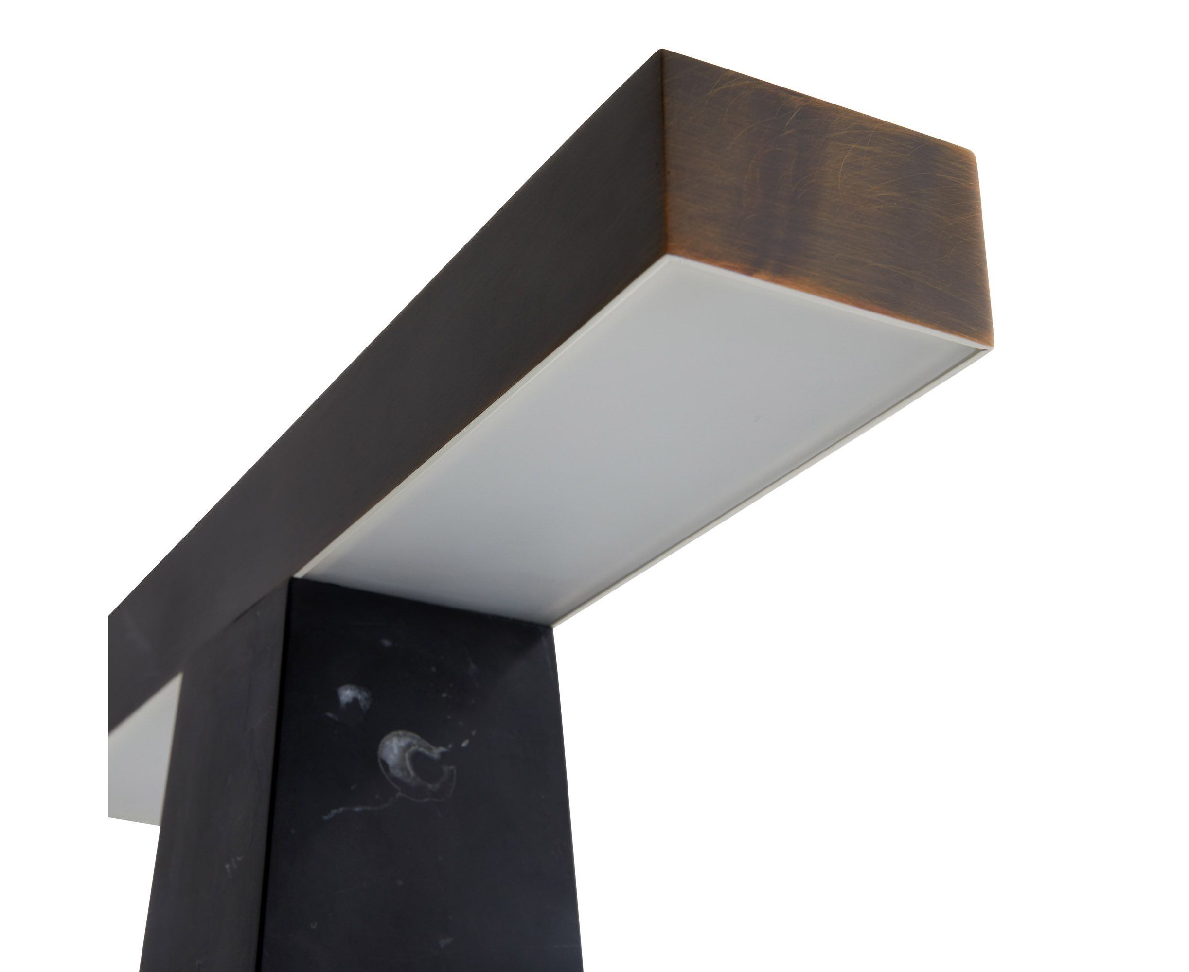 В OSBERT LAMP представлена композиция в балансе материалов и исполнении современного дизайна. Минималистичный т-образный профиль состоит из гладкого стального верха и прочного основания из черного мрамора. Стальная верхняя часть с английской бронзовой отделкой аккуратно скрывает светодиодную ленту, придавая ей ультрасовременный вид.