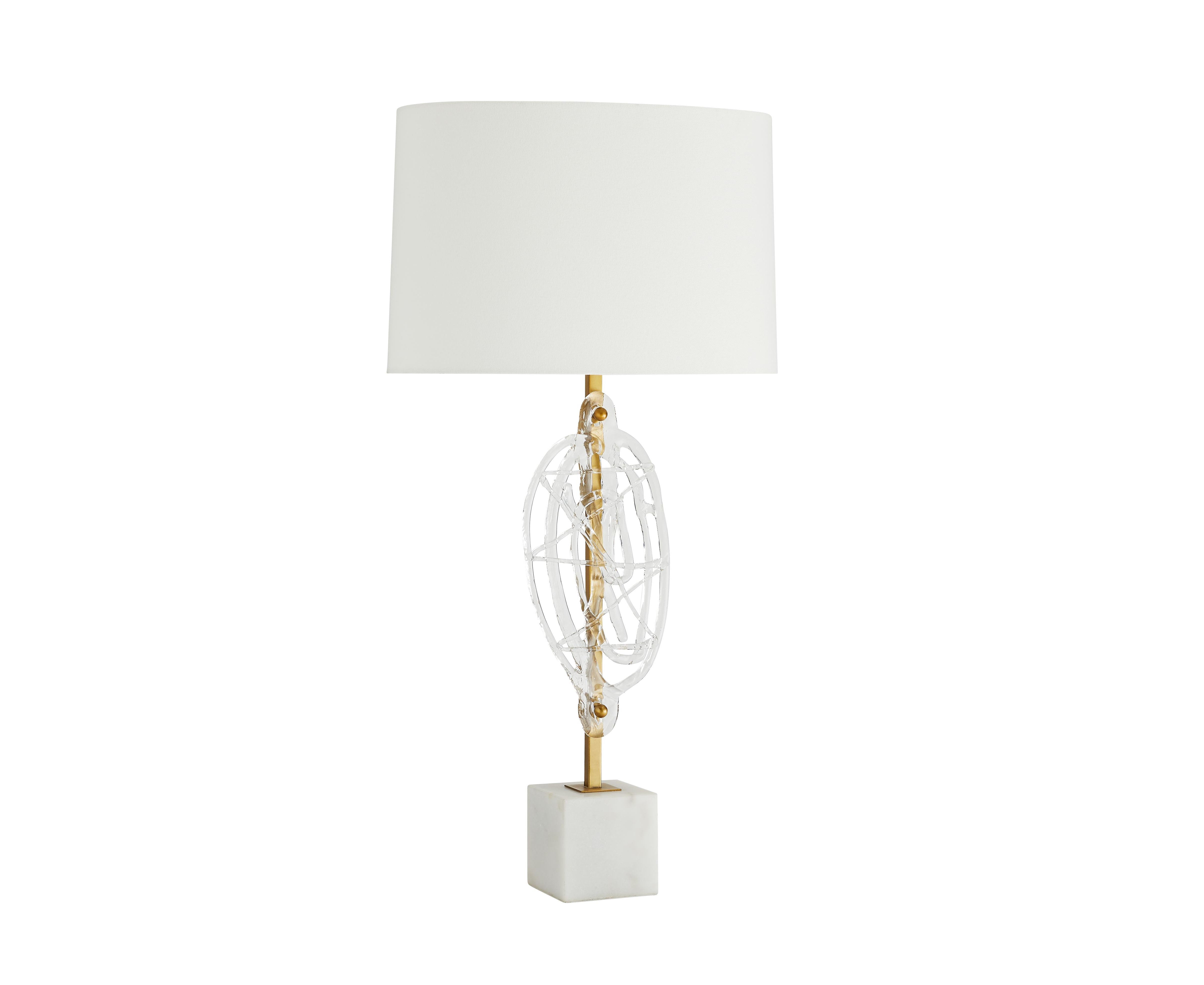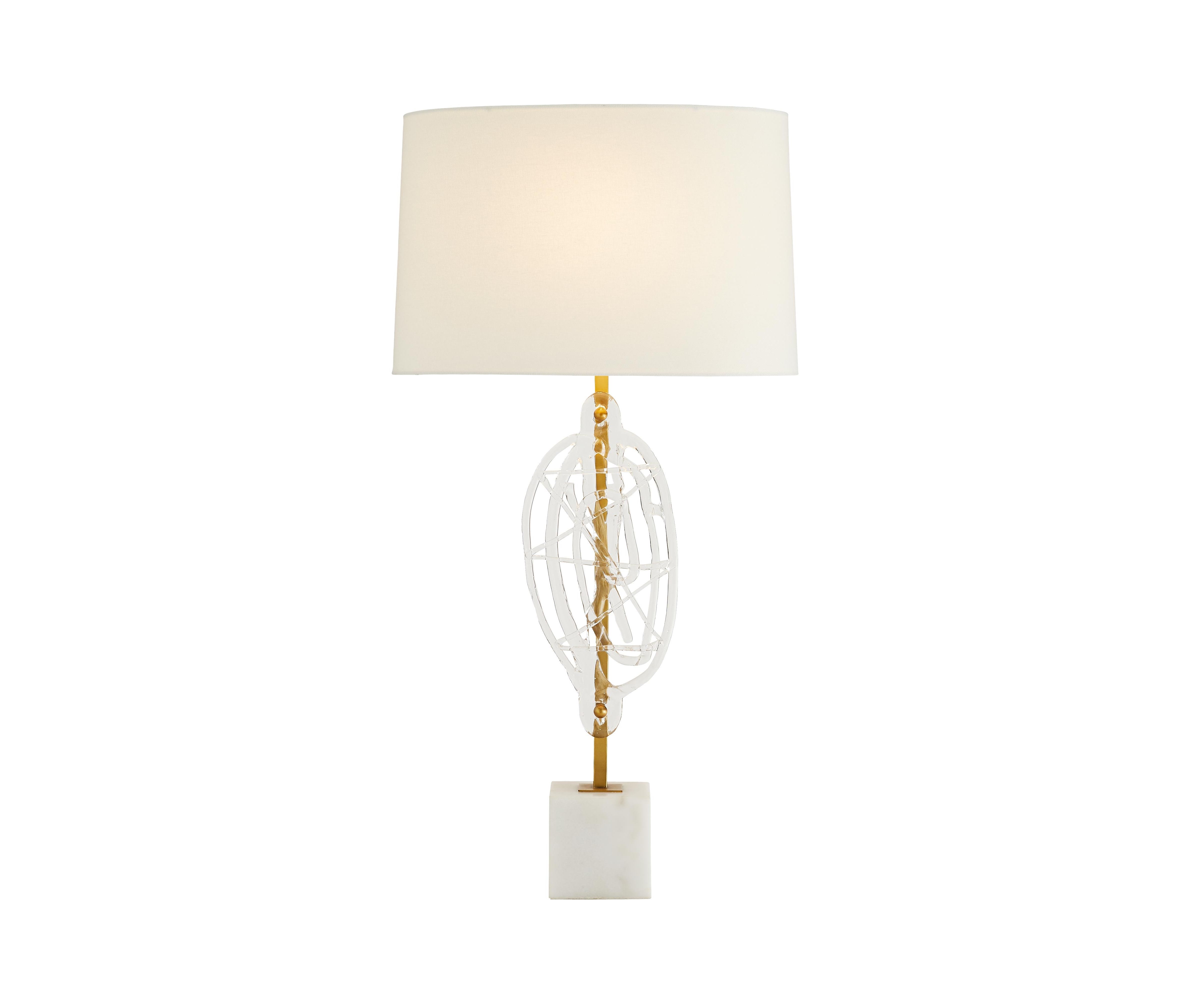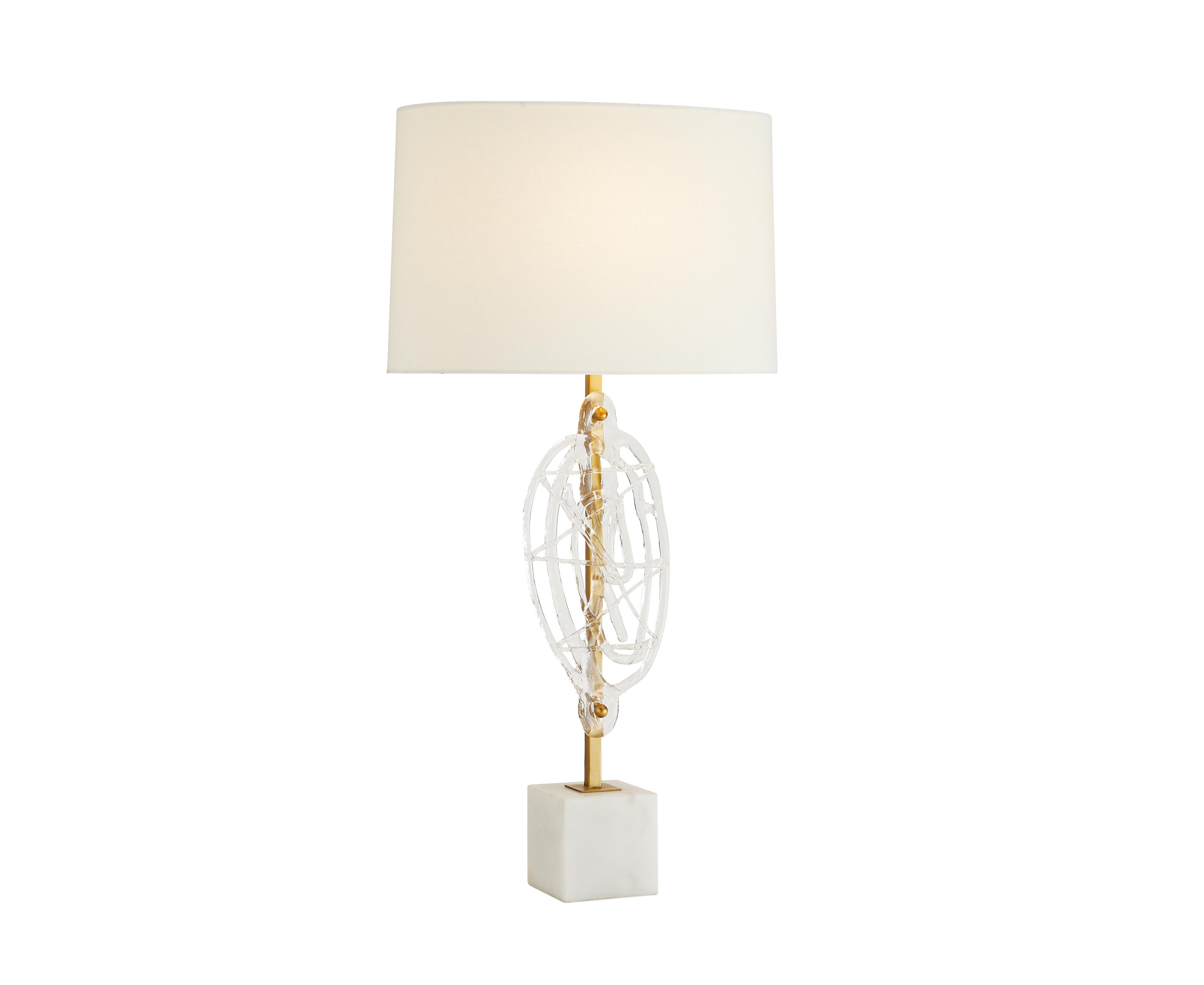Истинная форма искусства воплощена в безупречном мастерстве этого светильника. Прозрачное стекло умело выдувается в спагетти-подобную формацию, которая окружает античное латунное стальное основание. Дизайн свободной формы создает уникальную размерную характеристику, которая добавляет глубину, в то же время обеспечивая скульптурное качество пространства. Покрыта овальным белым льняным абажуром с белоснежной хлопковой подкладкой и подходящим металлическим украшением. Отделка может отличаться.