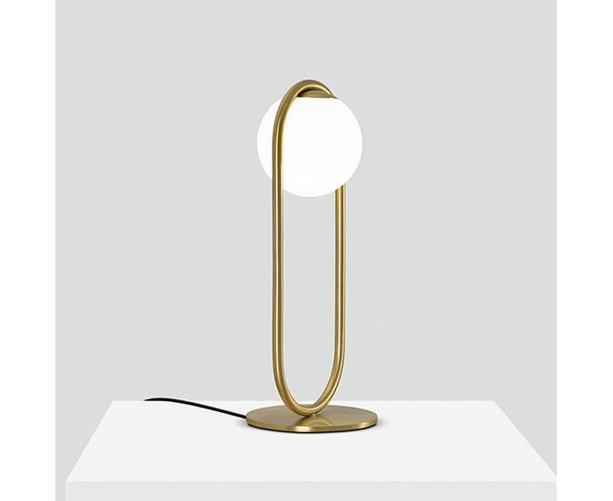 Коллекция декоративных ламп, образованных сферой из опалового стекла и металлических деталей, выполнена с покрытием из матовой латуни или черного лака. Доступны два размера подвески (S1 и S2), одна напольная и настольная модель.