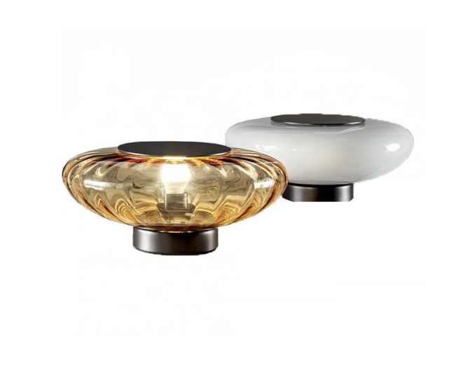 Стекло доступно в молочно-белом цвете или, в версии с оттенками или в полоску, в элегантном нефтяном или янтарном цвете. Лампы Acquerelli бывают двух видов. Размеры, большие или маленькие. В настольной версии два размера соответствуют двум разным формам абажура. В подвесной версии также доступен вариант с двойным остеклением, где маленький абажур в сочетании с большим образуют единый потолочный светильник, создающий удивительную игру света.