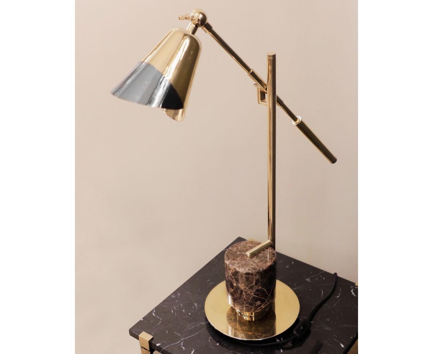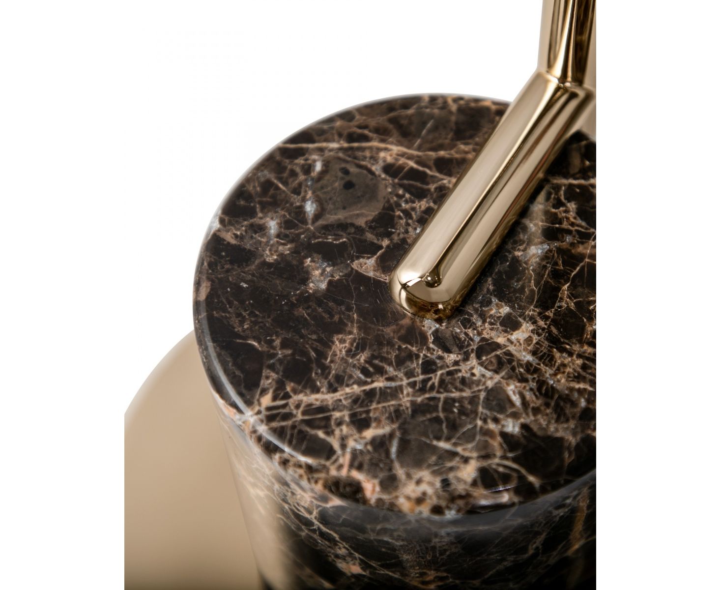 Основа светильника ручной работы детализирована с коричневым мраморным основанием из императорского коричневого цвета, выполненным в виде цилиндрической формы и заканчивающейся твердым позолоченным подносом. Сочетание шероховатости, тонких деталей и изысканного дизайна. Эта золотая и мраморная напольная лампа будет очень хорошо сочетаться с интерьерами разных концепций: модерн середины века или арт-деко.