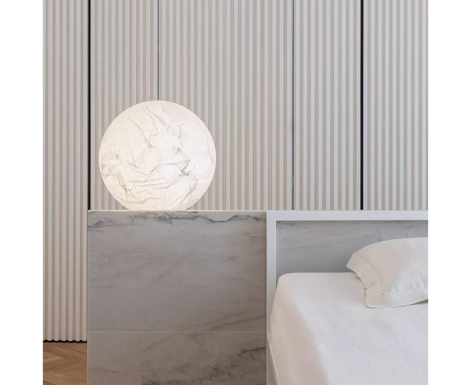 Это волшебство. И, как всякая хорошая магия, это срабатывает каждый раз. Если смотреть отсюда, луна имеет тысячу оттенков. Когда он полон, он приносит радость тем, кто наблюдает, как он вращается. Луна была создана из мечты о том, чтобы принести луну в ваш собственный дом. Поверхность из японской бумаги ручной работы делает каждую лампу уникальной.