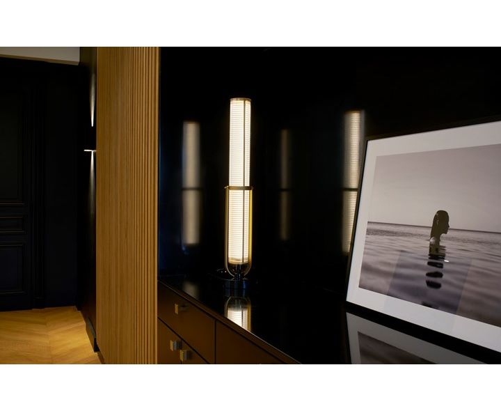La Lampe Frechin - это настольная и напольная лампа, состоящая из основания из черного мрамора и анодированного алюминия и боросиликатной трубки. Сопоставляя вневременной материал с поэтическим подходом к технологиям, этот светильник освещает пространство так же, как и предлагает чувствительный опыт оптики между наукой и магией.