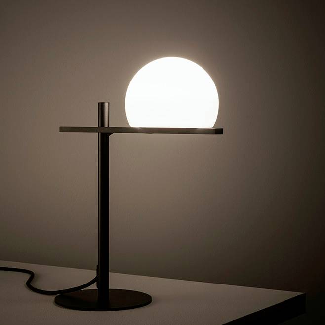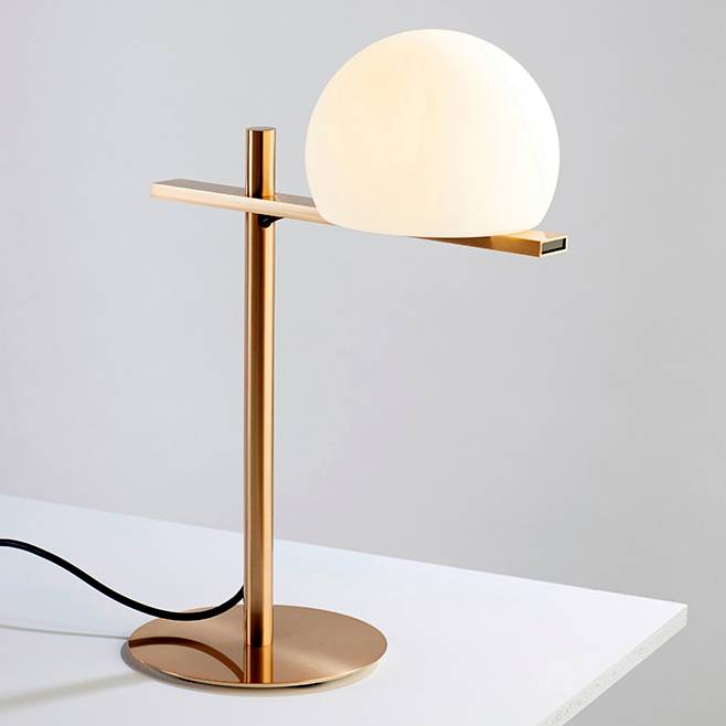 Металлическая настольная лампа, обеспечивающая прямой и непрямой свет.