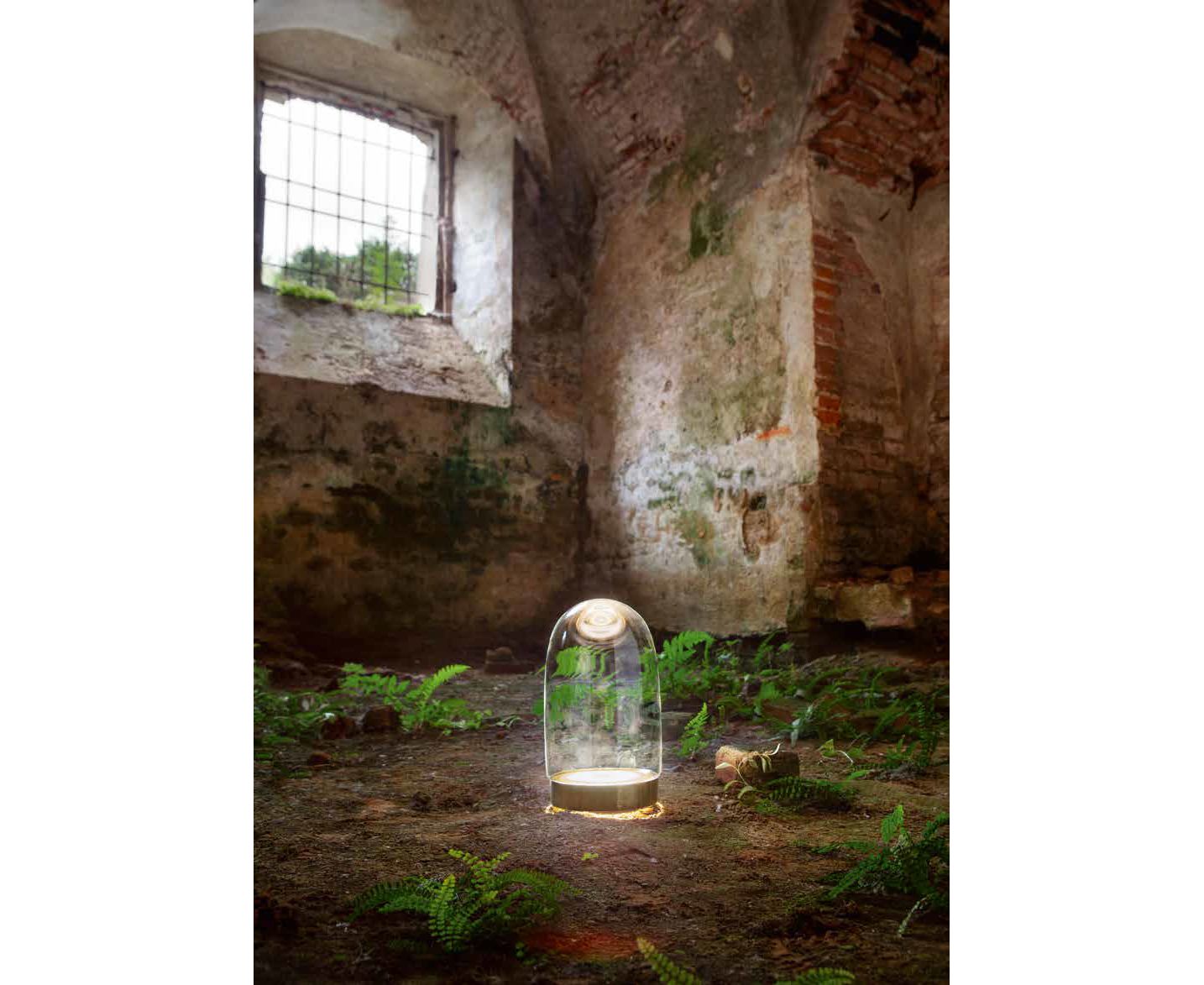 Разработанная таким образом, чтобы быть контейнером, сохраняющим и защищающим сообщение, предназначенное для будущего, эта лампа состоит из двух частей удлиненного полусферического боросиликатного стекла, соединенного с кольцевым металлическим элементом. Желание общаться с будущими поколениями сдерживается Tempo и освещает окружающее пространство, пока не будет найдено.