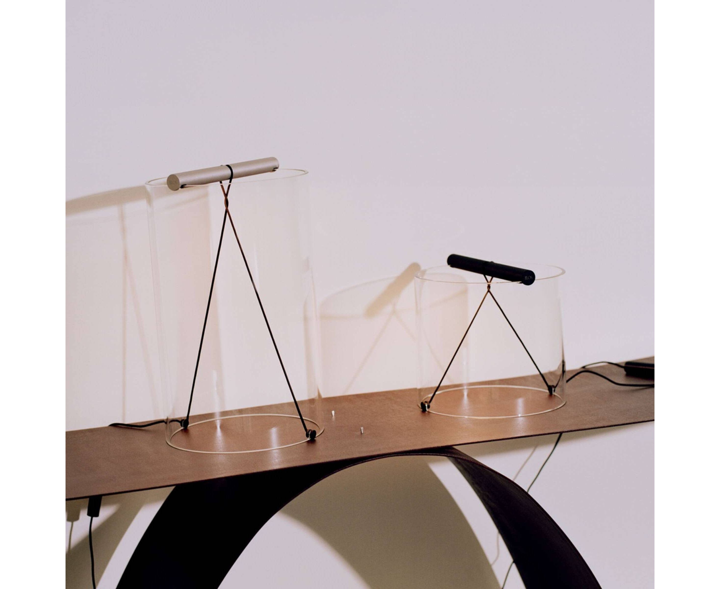 Разработанная Гульельмо Паолетти настольная лампа обеспечивает рассеянный свет. Цилиндрический корпус лампы из прозрачного стекла доступен в различных размерах. Ручка изготовлена из алюминия и также служит источником света. Рассеиватель с несколькими светодиодами из специально разработанного белого поликарбоната позволяет избежать эффекта множественной тени и ослепления. Высокоэффективный светодиодный источник со сроком службы более 50.000 часов. Электрический кабель полезной длины 180 см, обтянутый черной тканью и оснащенный диммером для включения / выключения и регулировки светового потока в диапазоне 10-100%. Подключаемый источник питания со сменными штекерами. To-Tie - это лампа, рассчитанная на будущее, поскольку для сборки ее различных частей не используется клей. Таким образом, продукт может быть отделен, заменен по отдельности и переработан отдельно.