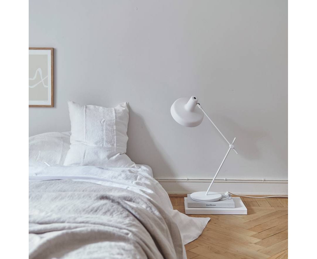 Прессованный алюминиевый абажур и стальной корпус сформованы, сварены и собраны вручную. Покрытый порошком. Основание лампы и абажур поворачиваются на 360 градусов. Выключатель шнура включения/ выключения рядом с основанием лампы. Использование внутри помещений.
