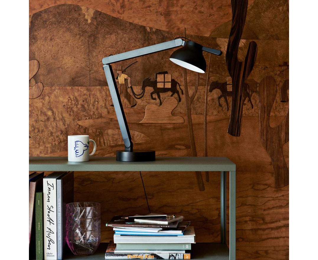 Светильник имеет очень функциональный дизайн с поликарбонатной головкой, алюминиевыми рычагами и основанием ABS, со скрытыми газовыми пружинами, которые позволяют кронштейну и абажуру удерживать свое положение, где бы они ни были перемещены. Он также оснащен встроенным сенсорным диммерным переключателем, который обеспечивает контроль над уровнем яркости. Он подходит как для частных, так и для офисных помещений и подходит для использования по контракту в качестве рабочего света.