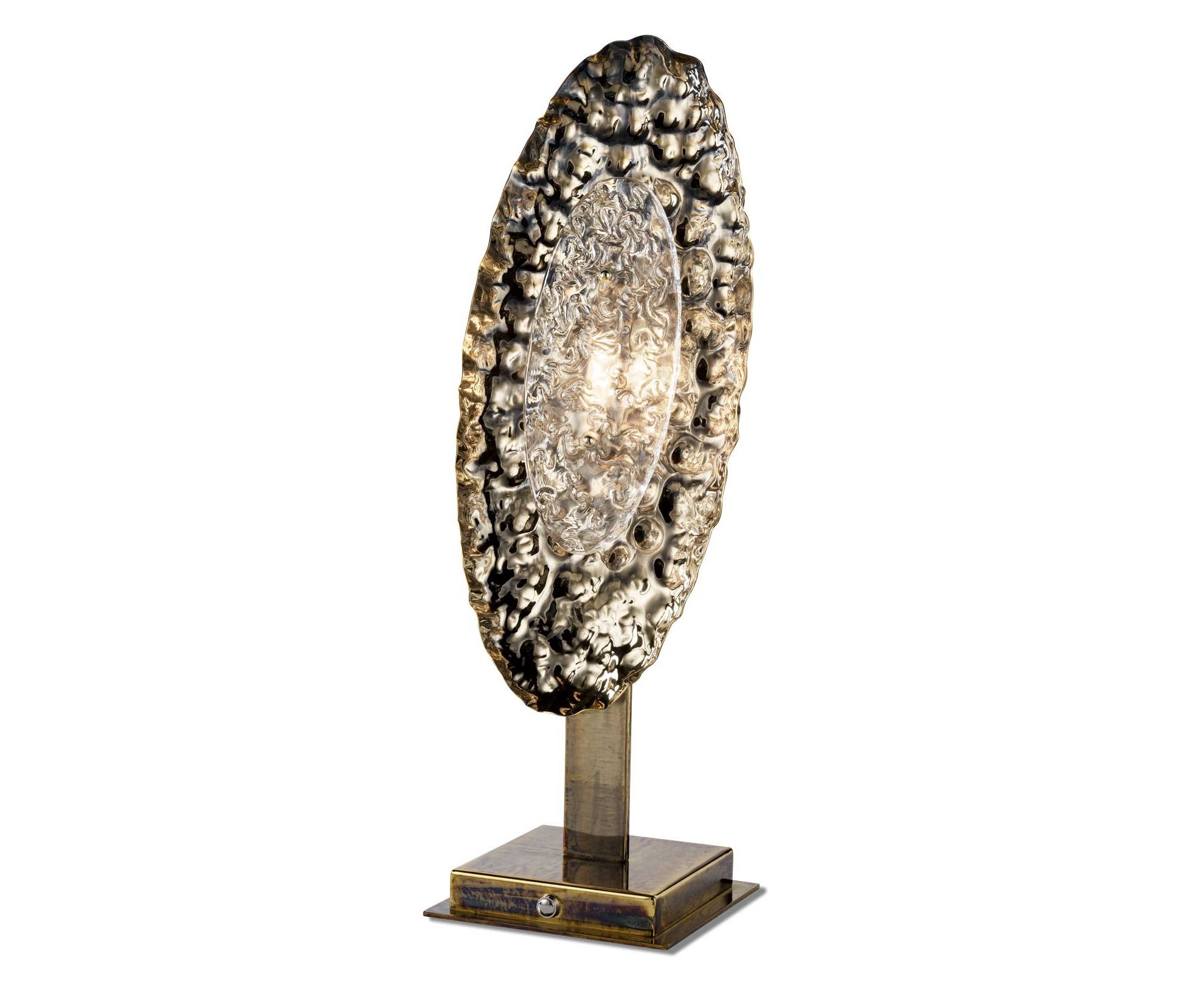 Подлинная душа муранского стекла сочетается в этой коллекции с неровными линиями, которые напоминают о естественном и доисторическом мастерстве. Металлическая рама доступна в следующих вариантах отделки: глянцевое античное золото, светлое золото и чистая сталь. Чеканное прозрачное муранское стекло.