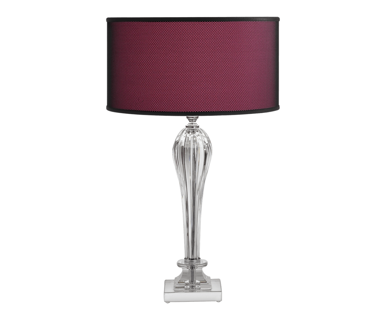 Настольная лампа из хрусталя с деталями из никеля и металла. Абажур цвета фуксии с черной сеткой. Доступны в разных размерах и цветах. Incanto Modern Collection.