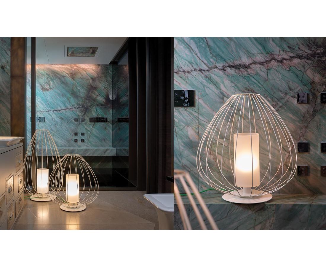 Более двух тысяч лет назад в Китае самые первые фонари взмыли в небо. Cell эмулирует их структуру и их дух, связывая воздух с тонкой металлической проволокой в белом или в новой бронзовой версии, клеткой света, которая повышает ее интенсивность. Светильник - светящееся сердце в белье для внутреннего варианта и в опаловом плексиглас для наружного, дополненное кисточкой из белого или черного шелка в бронзовом исполнении.