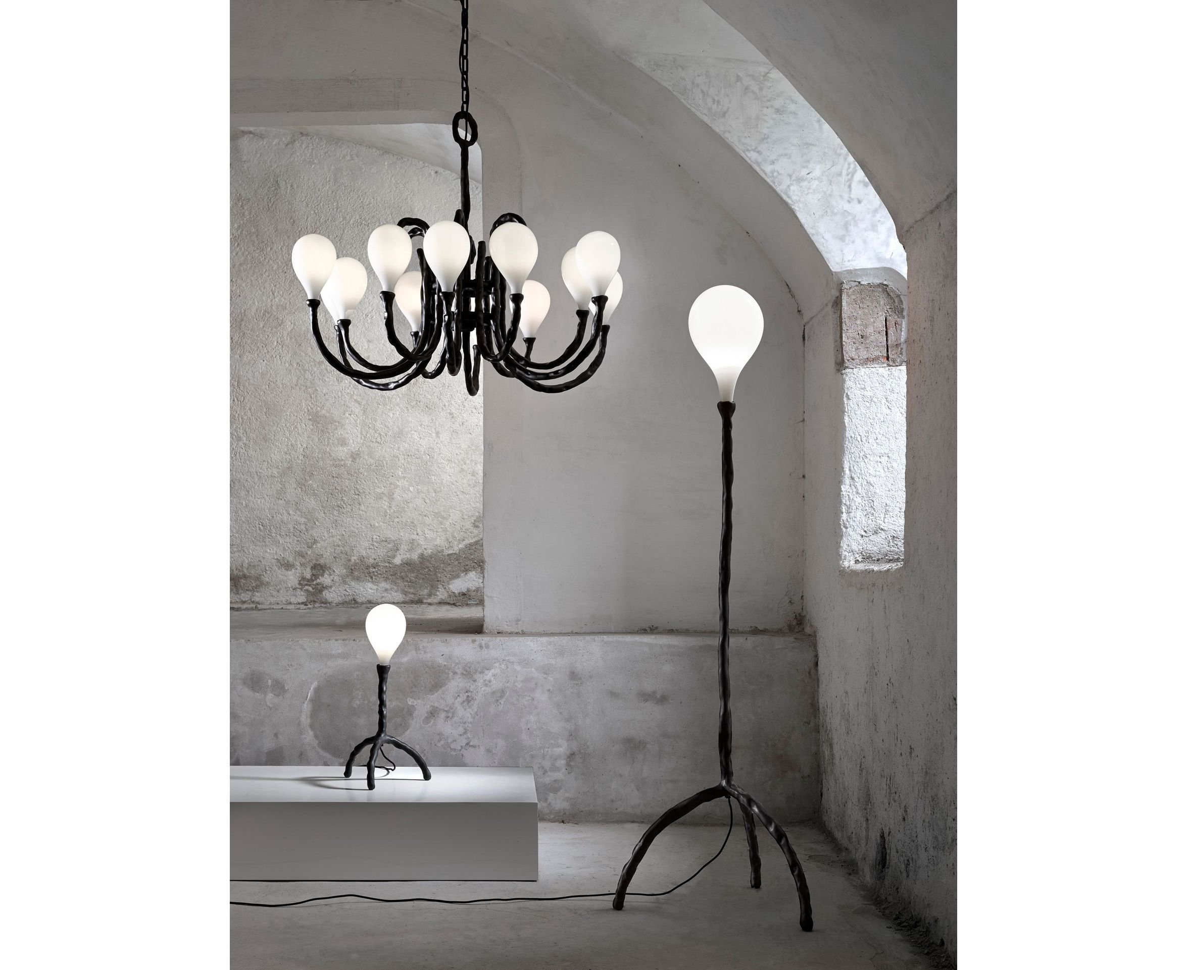 С этим произведением Maarten Baas обратился к классическим, узнаваемым формам, но с современными и почти комическими изюминками. Технически это уникальное совместное предприятие между классическим выдувным стеклом ручной работы от Lasvit и глиняным корпусом Бааса и его производственной командой из производственного дома Den Herder Production House.
