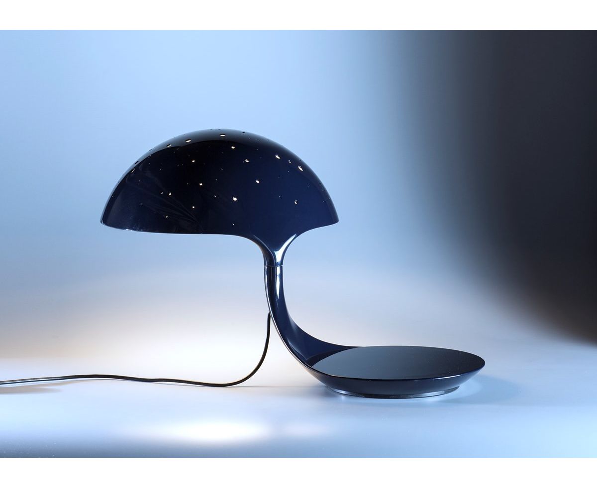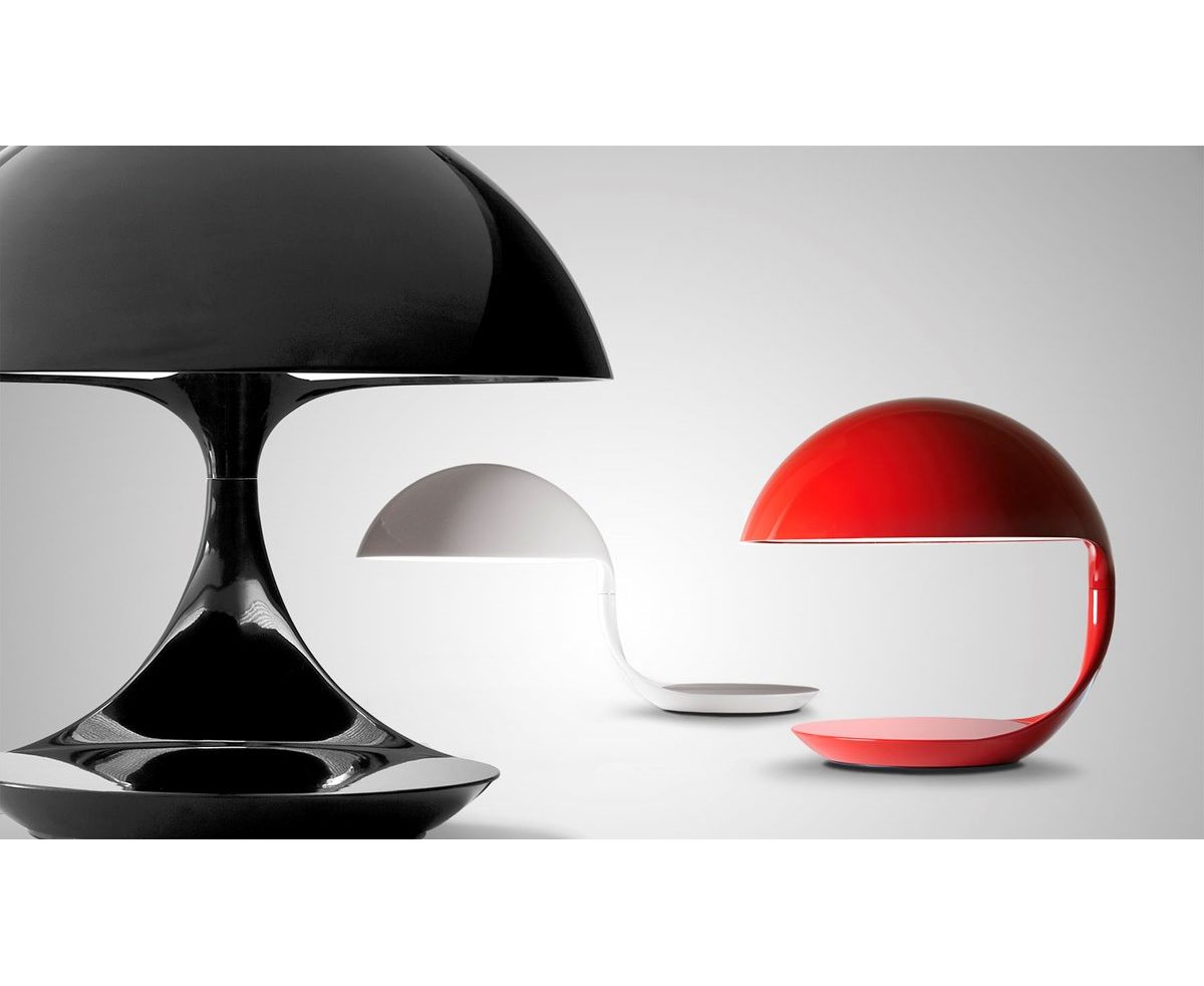Спроектированная Элио Мартинелли в 1968 году, Cobra является одним из первых осветительных приборов, изготовленных с использованием специальной системы литья из пластмассы. Лампа характеризуется простыми линиями и геометрической формой, вписанной в сферу, но при вращении руки отражатель принимает положение, напоминающее голову кобры, готовой к броску.