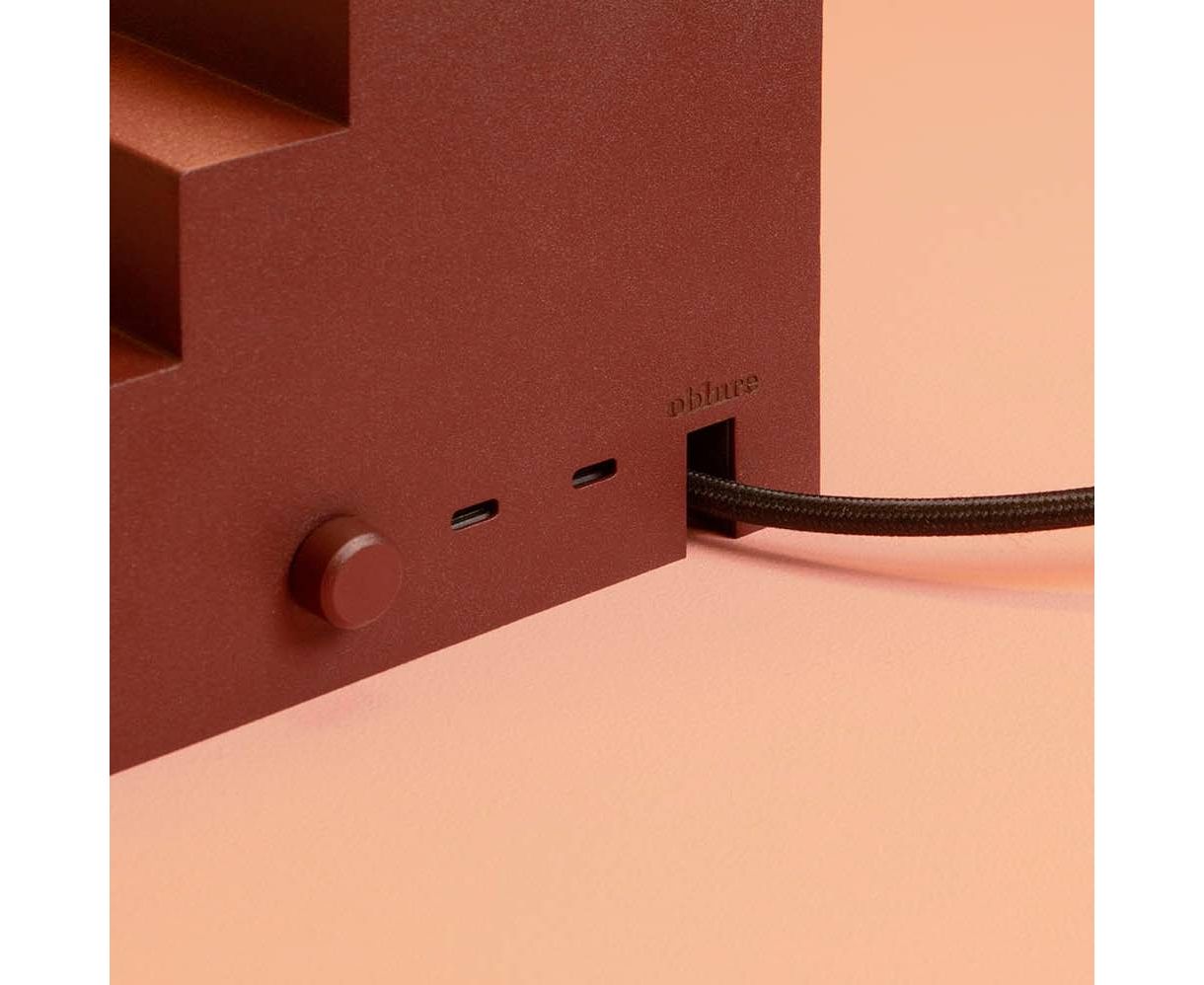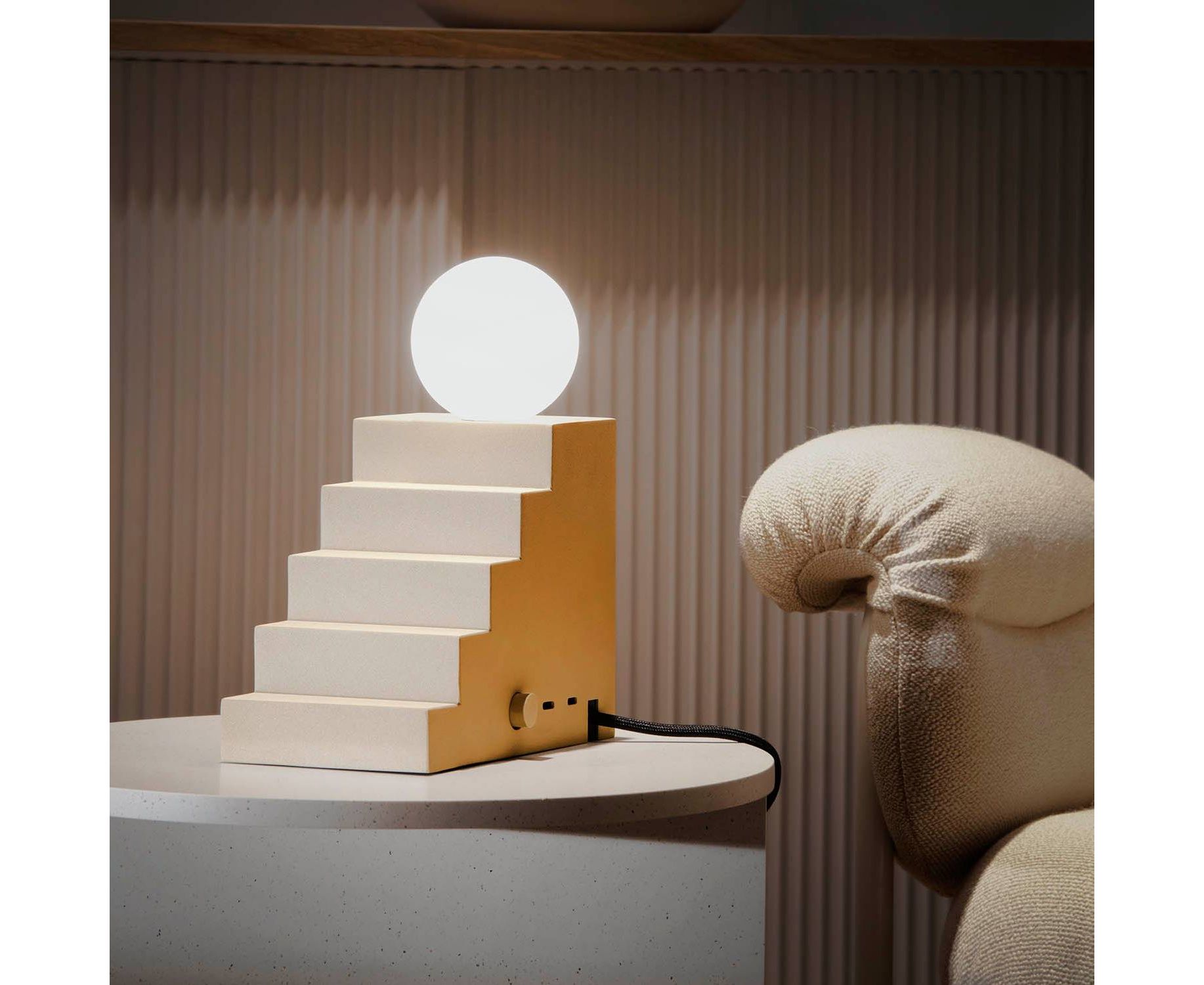 STAIR черпает вдохновение в базовой геометрии цельного лестничного блока. Сфера вызывает любопытство, находясь на грани времени. “Моментальный снимок“ движения в серии событий создает сильный символический образ. Когда глобус освещен, это приводит к красивой игре теней. Отличительная форма скрывает набор функций, поскольку STAIR оснащен двумя портами USB-C и скрытой электрической розеткой под ними. В цифровом мире, где люди воспринимают технологии как нечто само собой разумеющееся, это предоставляет множество пользовательских возможностей.
