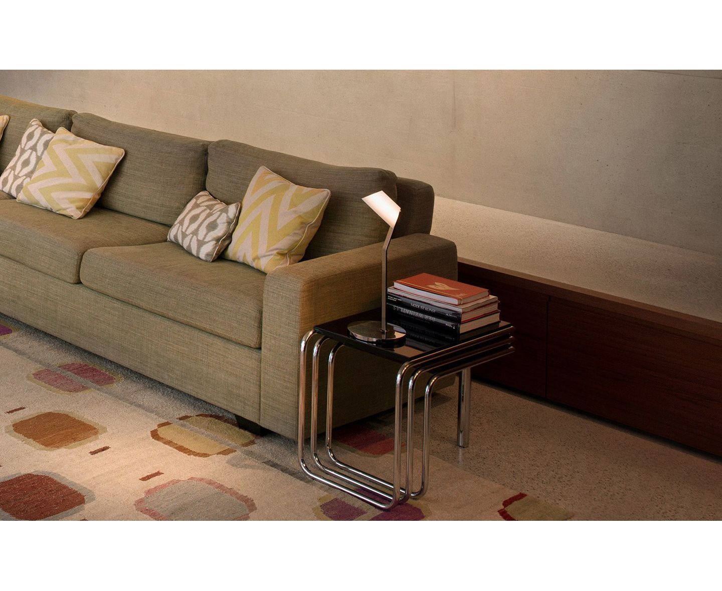 Элегантная вращающаяся светодиодная настольная лампа с очаровательной технологией освещения. 9-ваттный светодиод «идеального цвета» обеспечивает наилучшую цветопередачу. lei tavolo можно легко затемнить с помощью сенсорной кнопки на головке лампы. Ирисовая диафрагма позволяет направлять свет для чтения или для создания атмосферы расслабления.