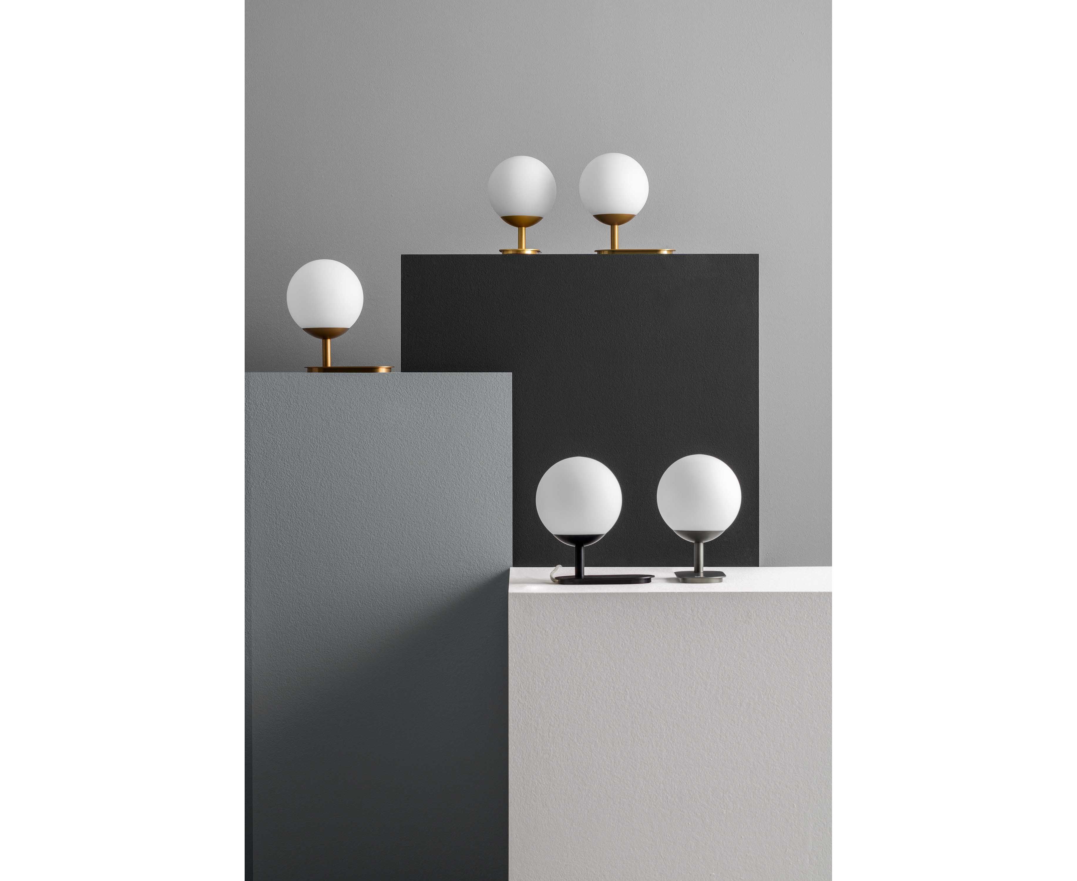 La Pallina - настольная лампа со сферическим рассеивателем из опалового выдувного стекла для широкого и удобного светового луча. Основание, выполненное из анодированного алюминия, имеющего различную отделку, оснащено сенсорным управлением для включения, выключения и затемнения.