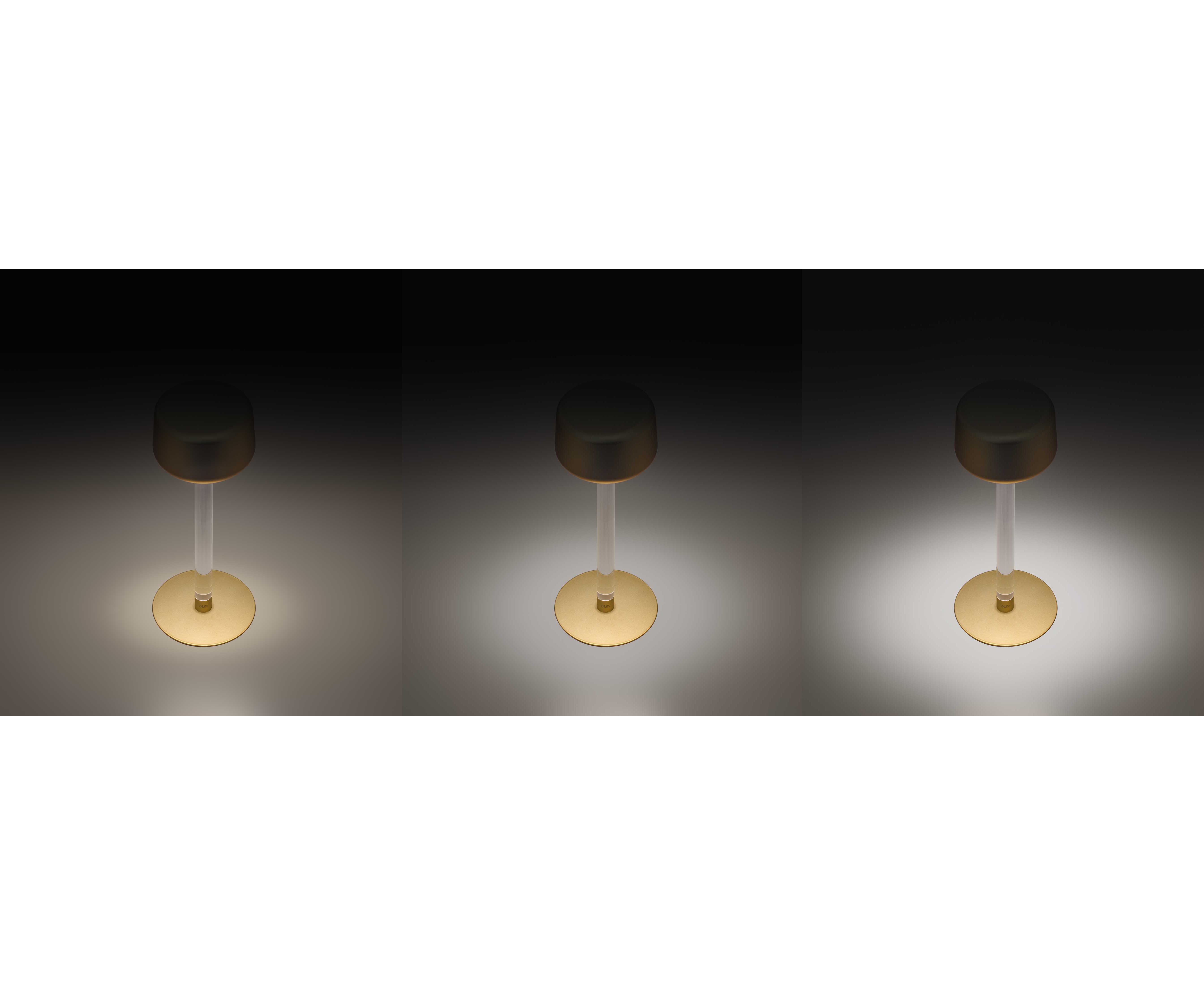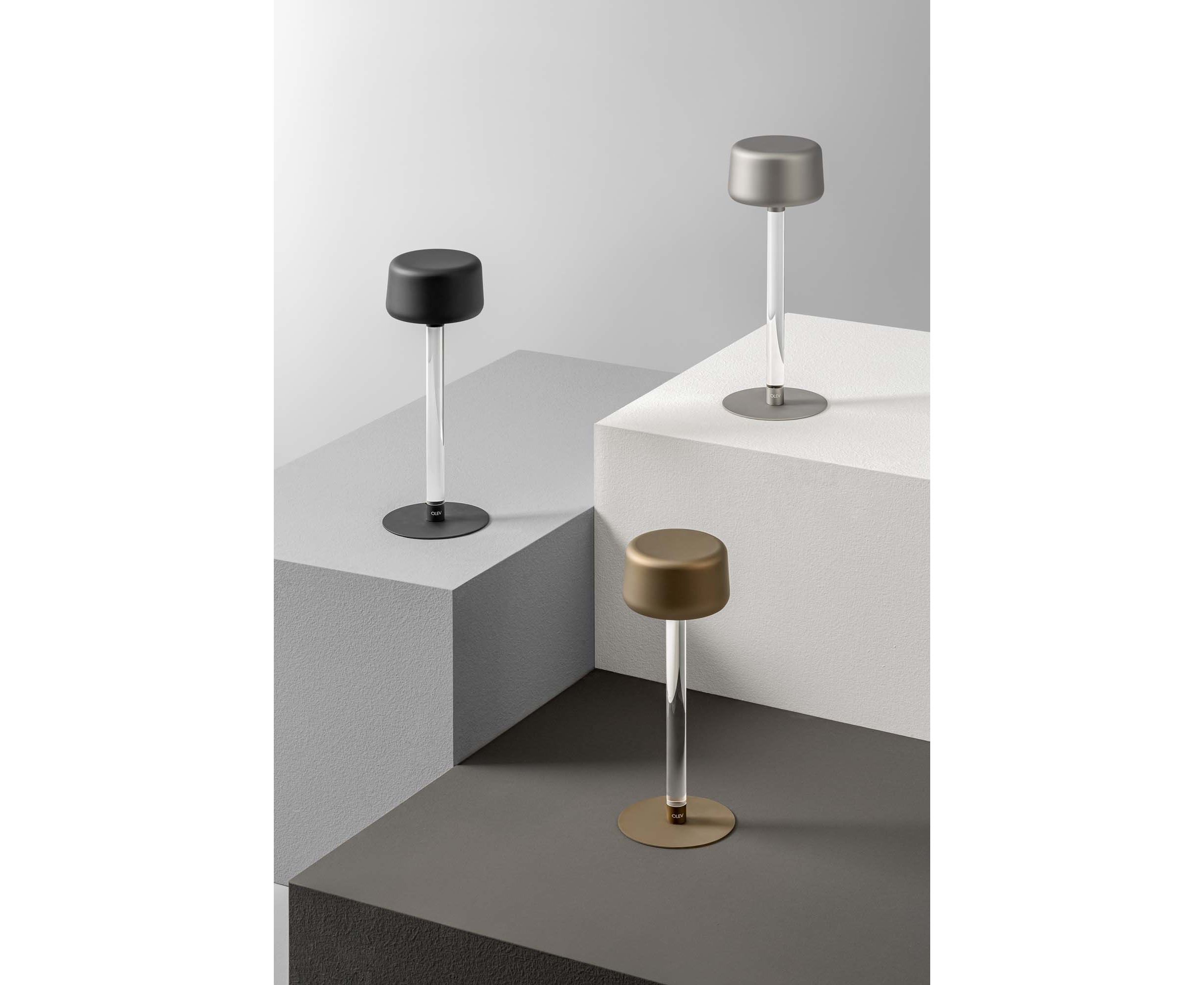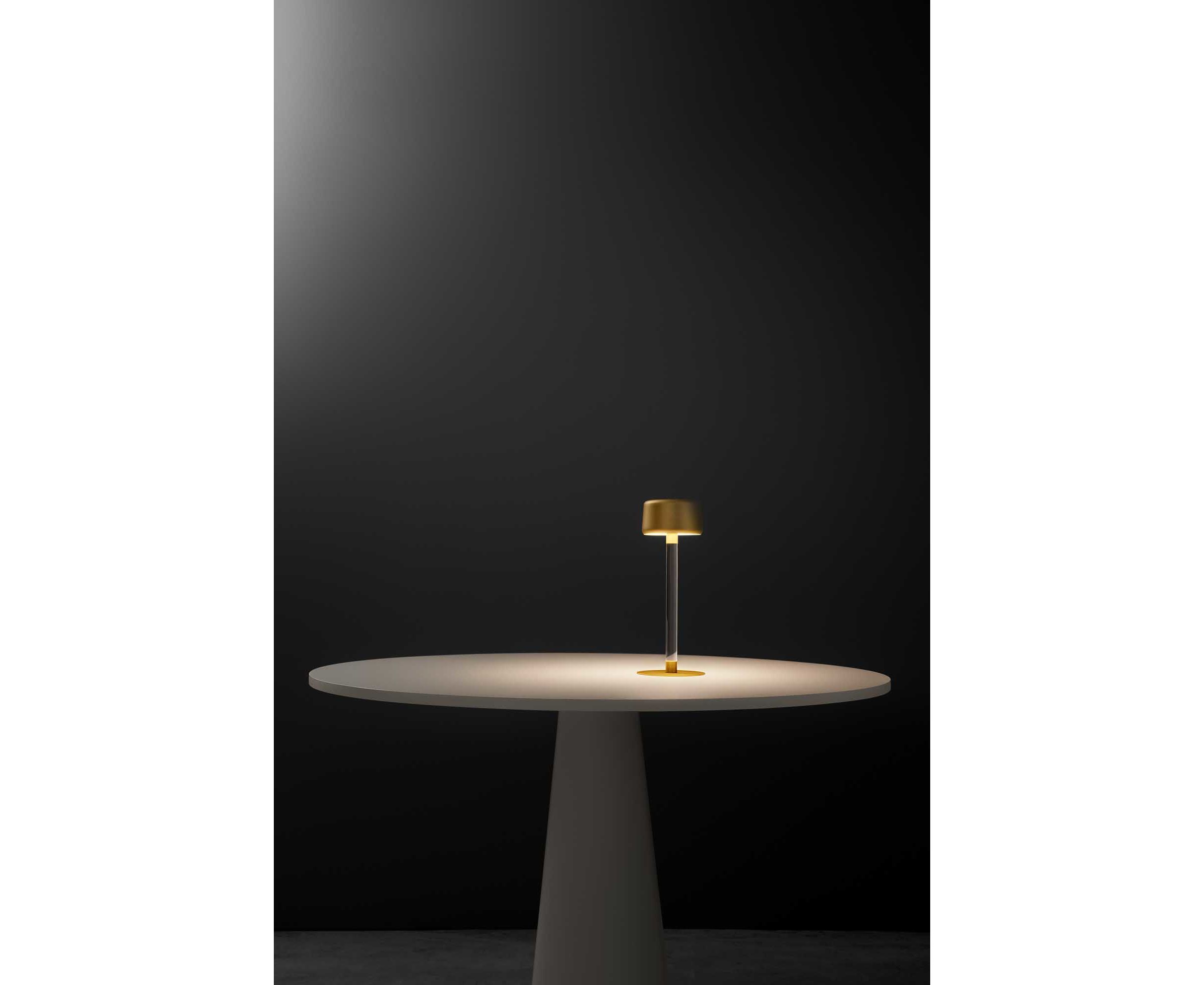 Tee - полностью беспроводная настольная лампа с аккумулятором. Она идеально подходит для освещения столиков ресторана или дома, поскольку позволяет гостям четко видеть блюда, даже не бросаясь в глаза. Технология Dim to Warm LED позволяет регулировать интенсивность и цвет света, создавая элегантную и захватывающую атмосферу. Одним нажатием кнопки теплый белый свет постепенно превращается в теплое, мягкое свечение.