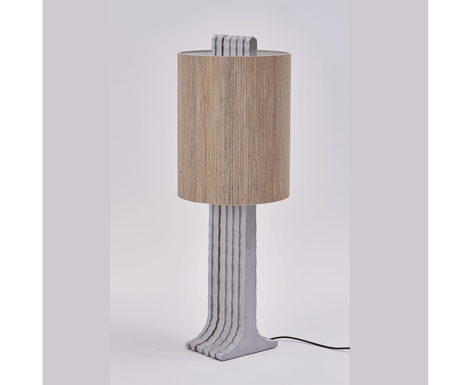 Алюминиевая лампа с необработанным краем, отделанная элегантной полированной отделкой цвета шампанского. Натуральный абажур изготовлен из 100% непальского конопляного волокна. Источник света лампы Е27.
