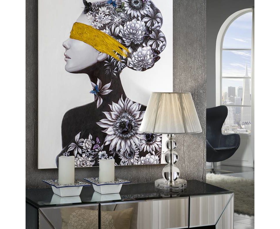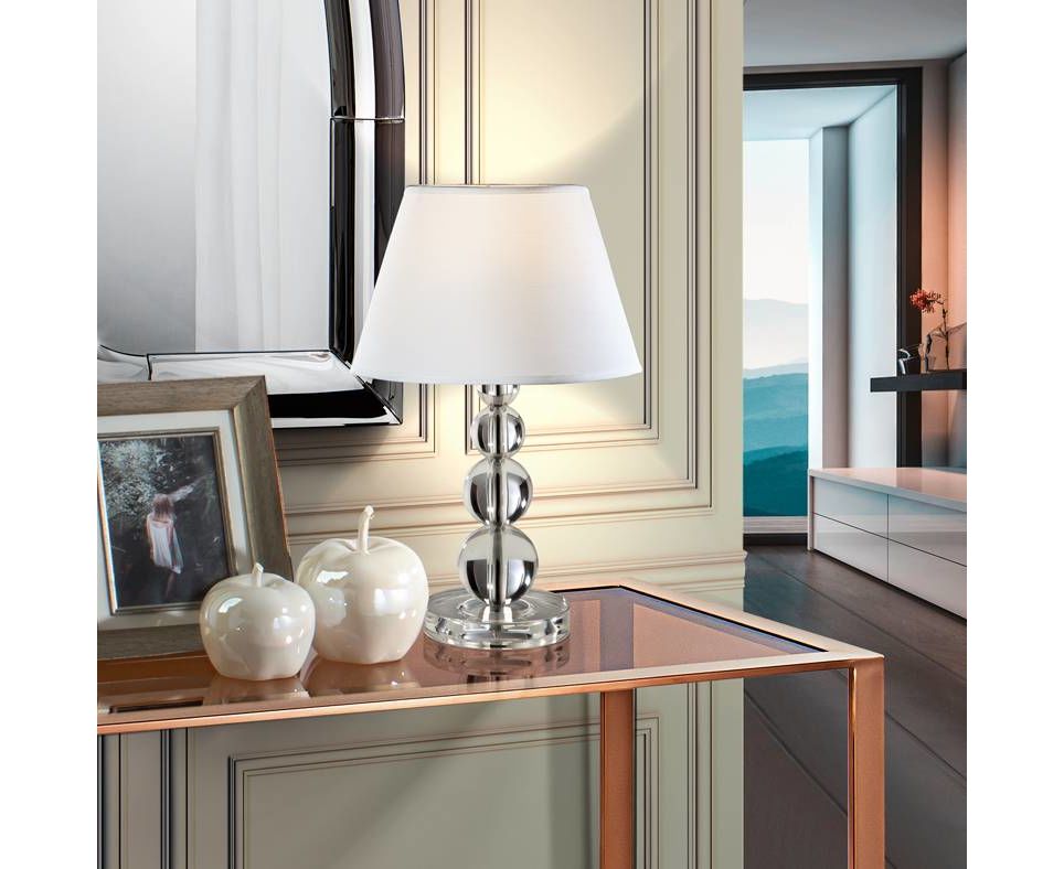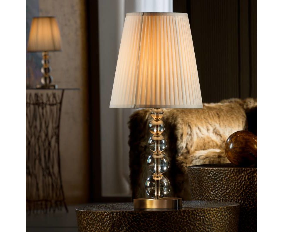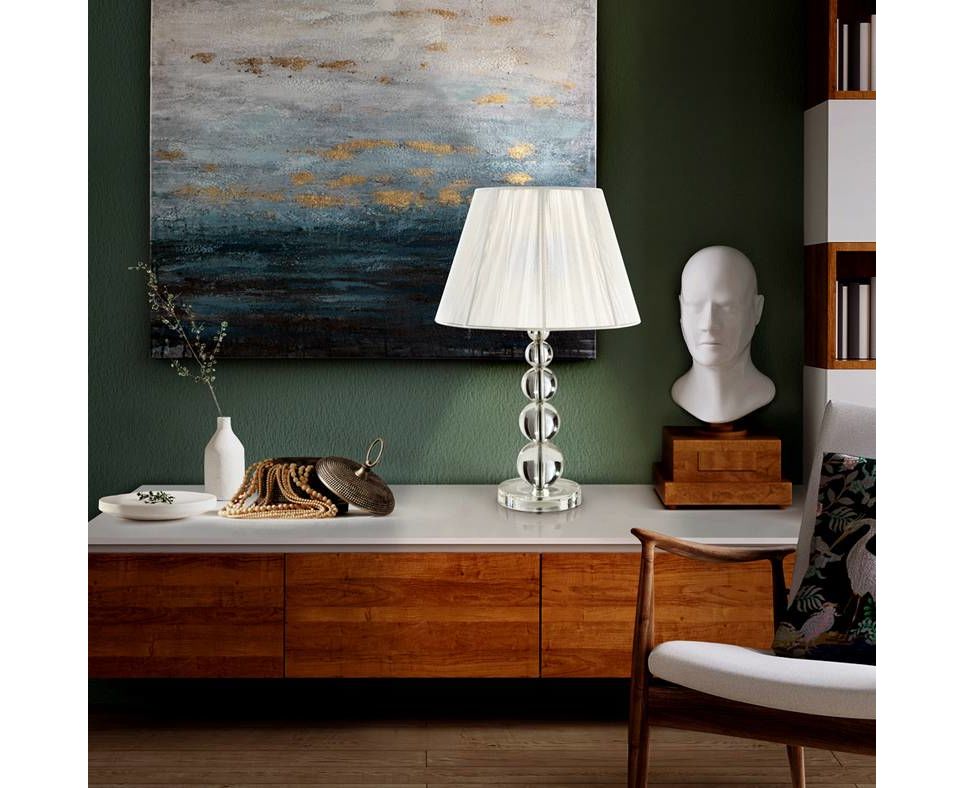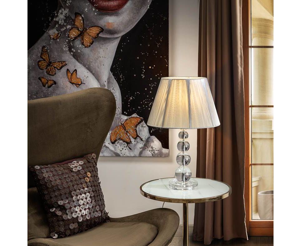 Настольная лампа с 1 лампой, из прозрачного акрила типа метакрилата, абажур из ткани цвета натурального льна.