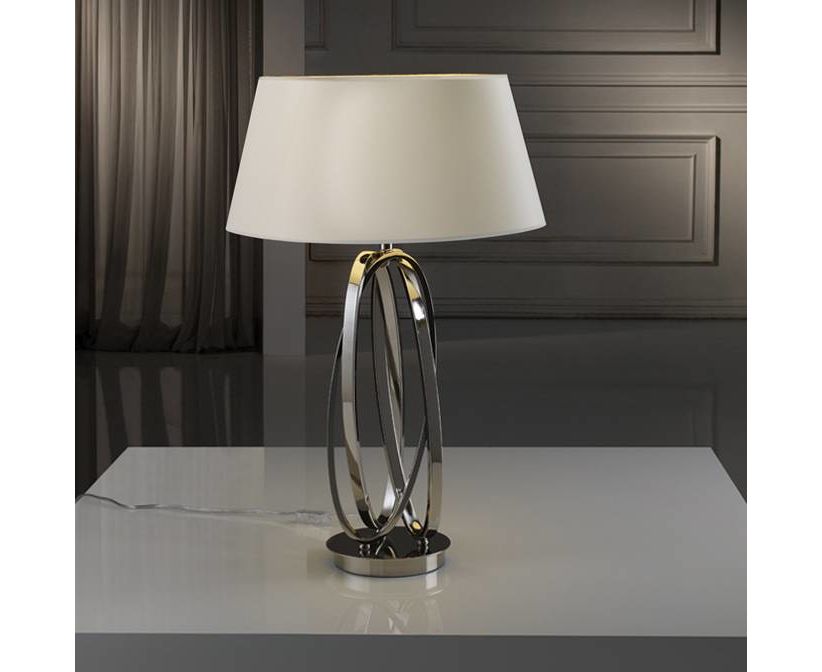 Настольная лампа из металла с 1 лампой, с покрытием "полированный никель". Абажур конический цвета натурального льна.