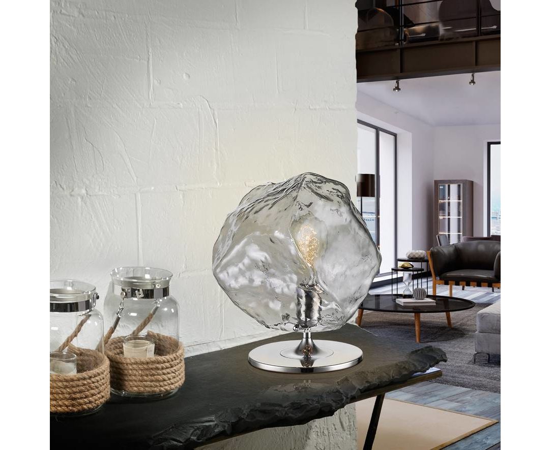 Настольная лампа с 1 лампамой, из металла и нержавеющей стали с покрытием "хром". Большой плафон из стекла светло-дымчатого цвета.