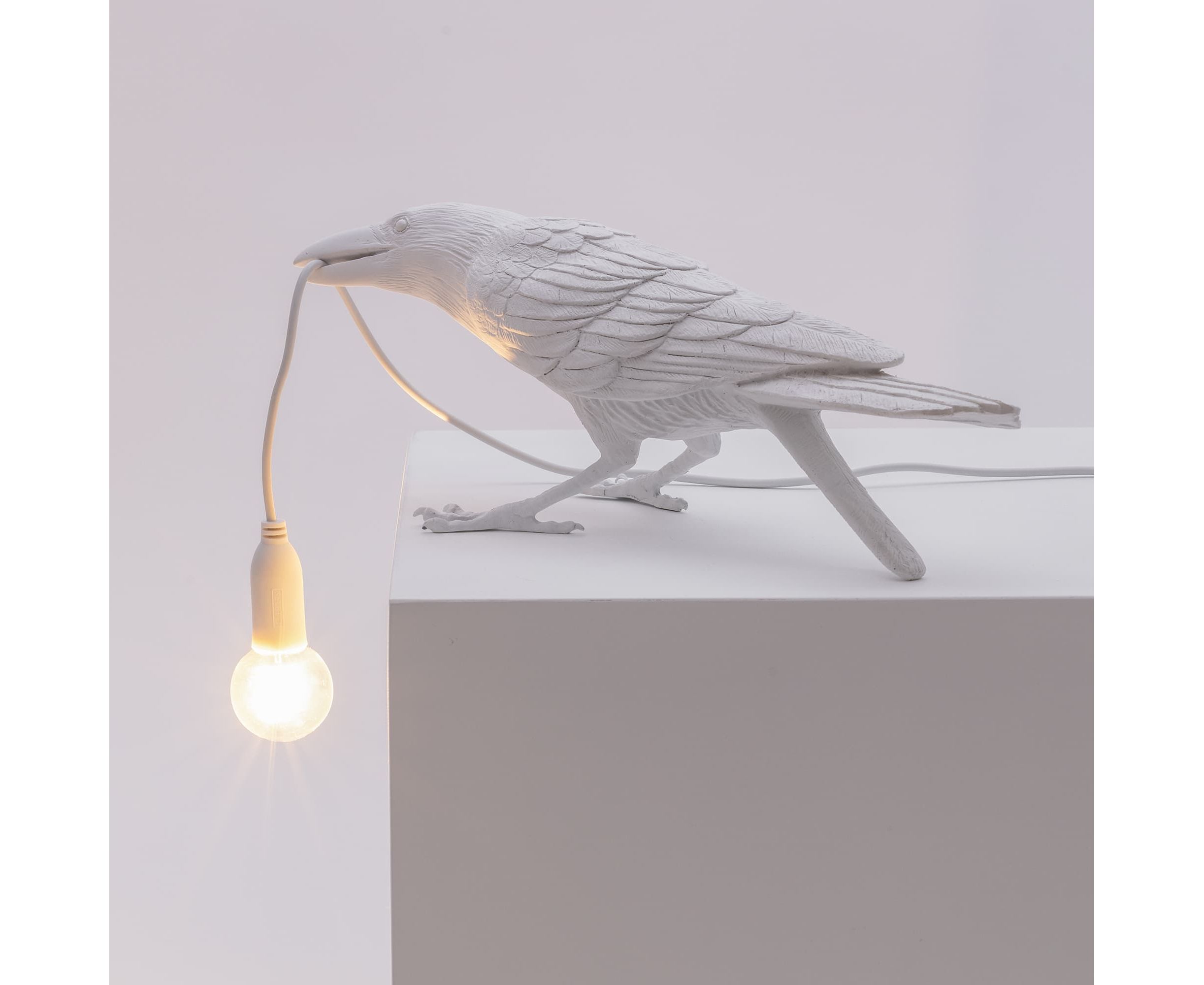 Лампы Bird сделаны из белой смолы и представлены в 3 разных позах и 2 цветовых вариациях: черном или белом. Они держат в клюве светодиодную лампочку с теплым светом.
