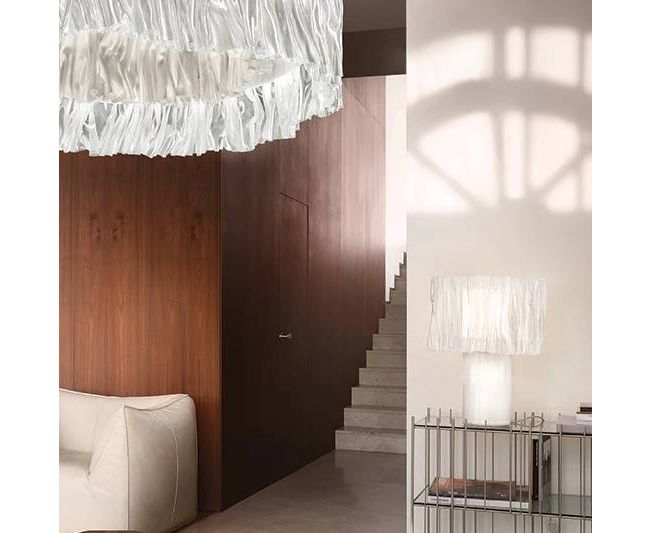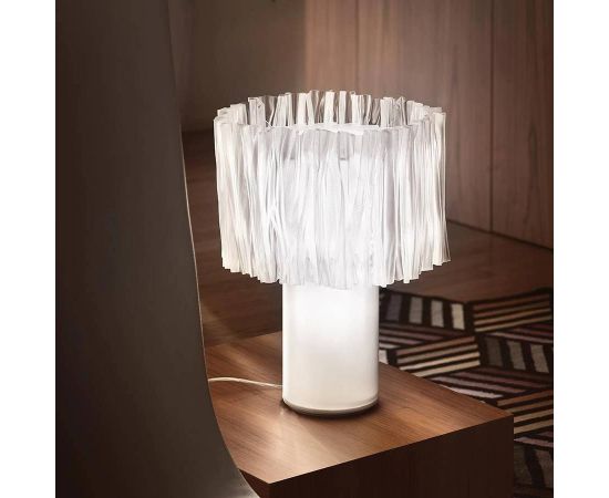 Коллекция Accordéon представляет собой новое повествование в современном дизайне: эксклюзивный материал Lentiflex® от Slamp нагревается и формируется вручную. Каждый предмет уникален, но лампы идентичны. На тонкой стальной табличке на боковой стороне каждой лампы написано «Сделано вручную в Италии», что свидетельствует об уникальном дизайне продукта. Внутренняя структура и застежка соответствуют текучести внешнего диффузора плиссе и предотвращают накопление пыли. Лампа имеет два переключателя, один для абажура, а другой для основания. Оба источника света можно использовать вместе, и они отбрасывают равномерное свечение и силуэт, похожий на хлопок. Абажур и розетки настольной лампы имеют магниты для облегчения очистки и замены лампочек.
