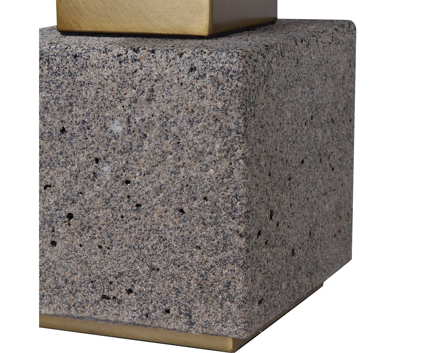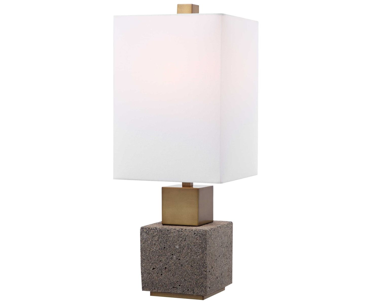 Демонстрируя пористый гранитный облик, эта мужская лампа отделана пестрой темно-серой и песочно-коричневой основой с изысканными элементами из состаренного золота. Квадратный абажур покрыт белой льняной тканью.