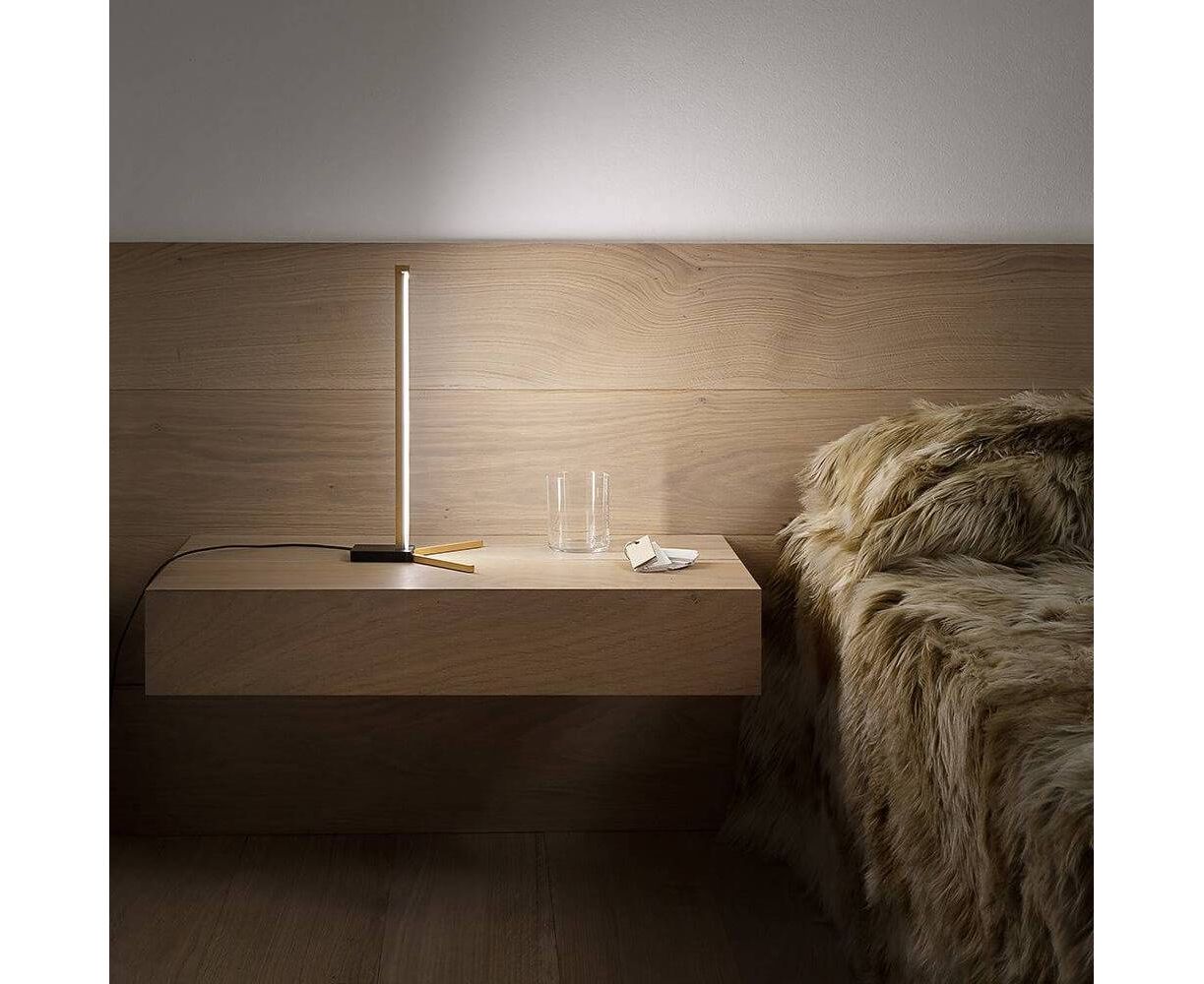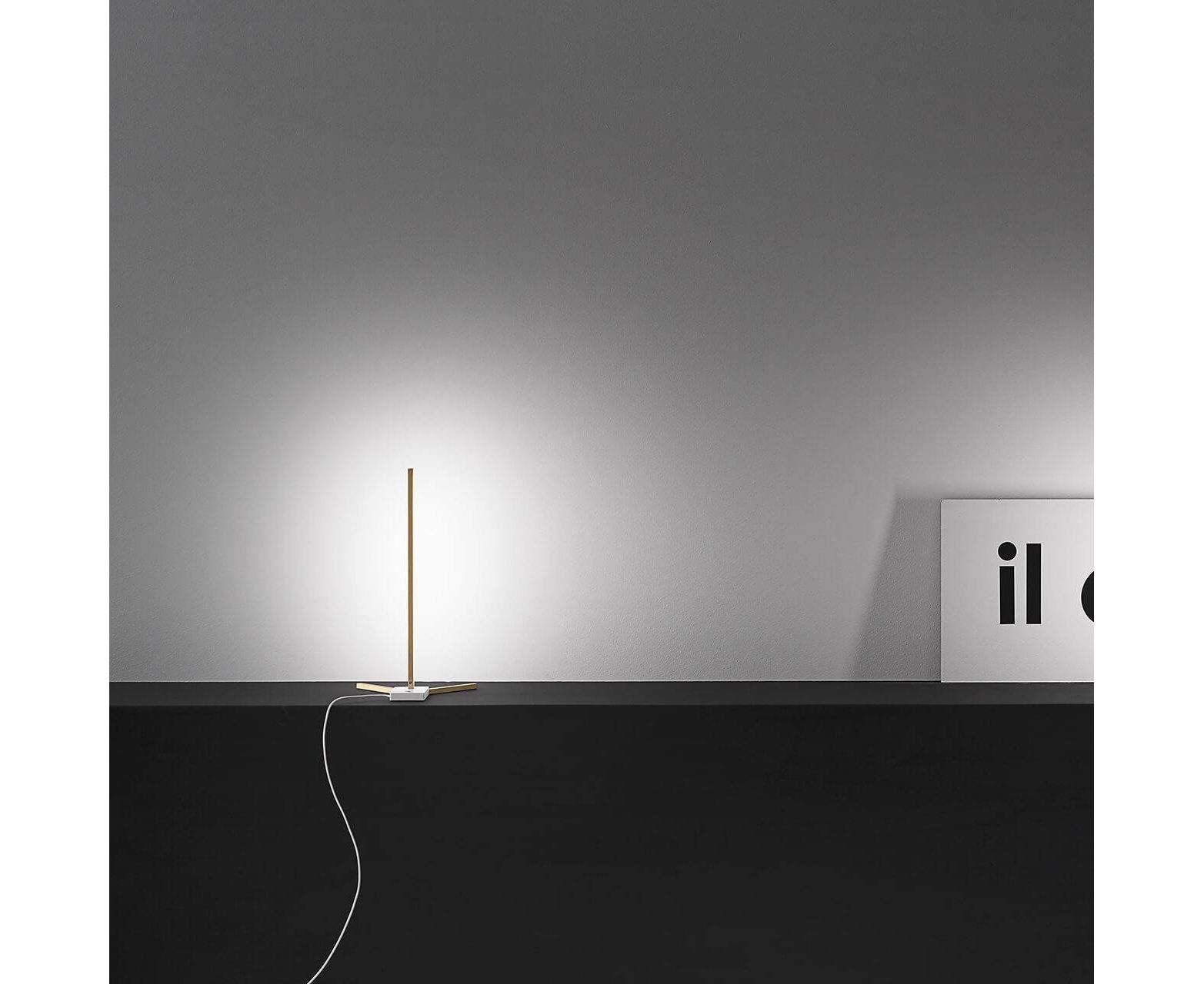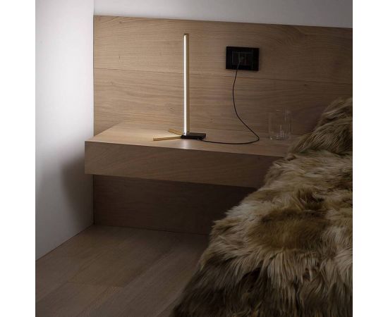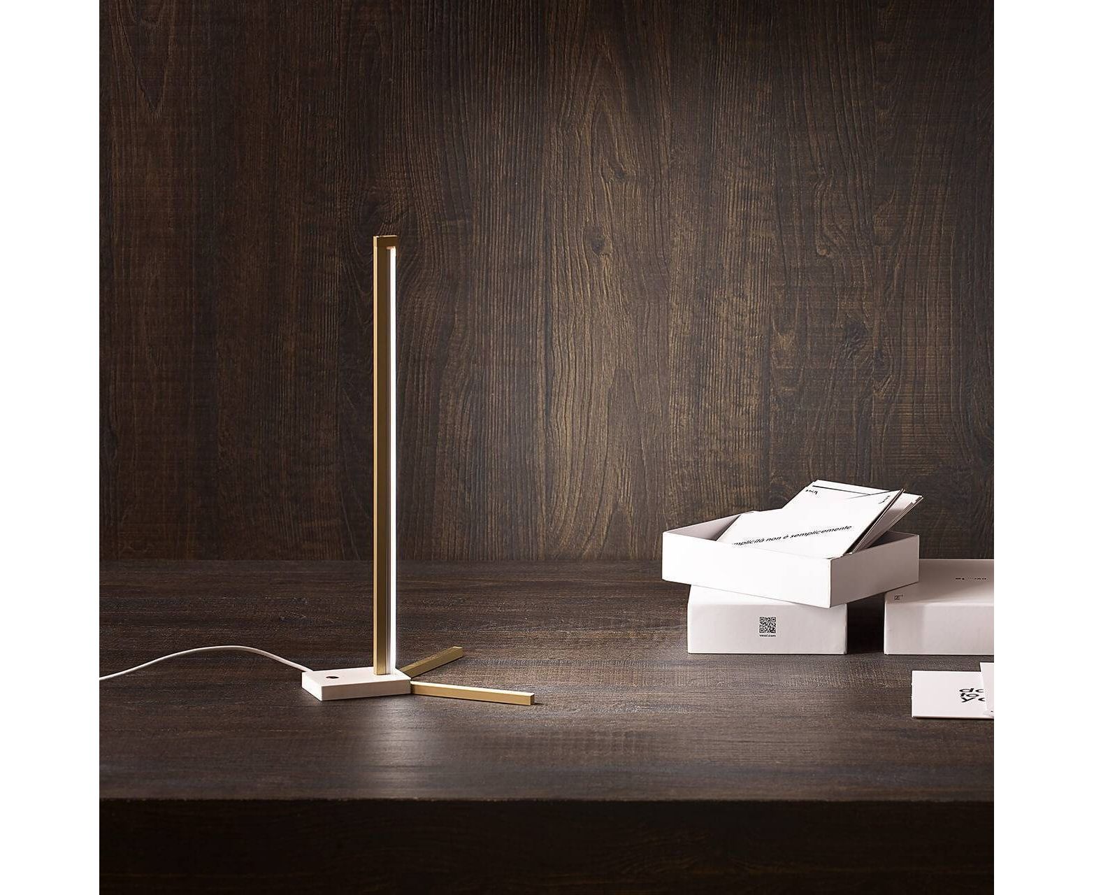 Настольный светильник с латунной/алюминиевой конструкцией. Отделывается латунью. Встроенный светодиодный модуль и опаловый диффузор.