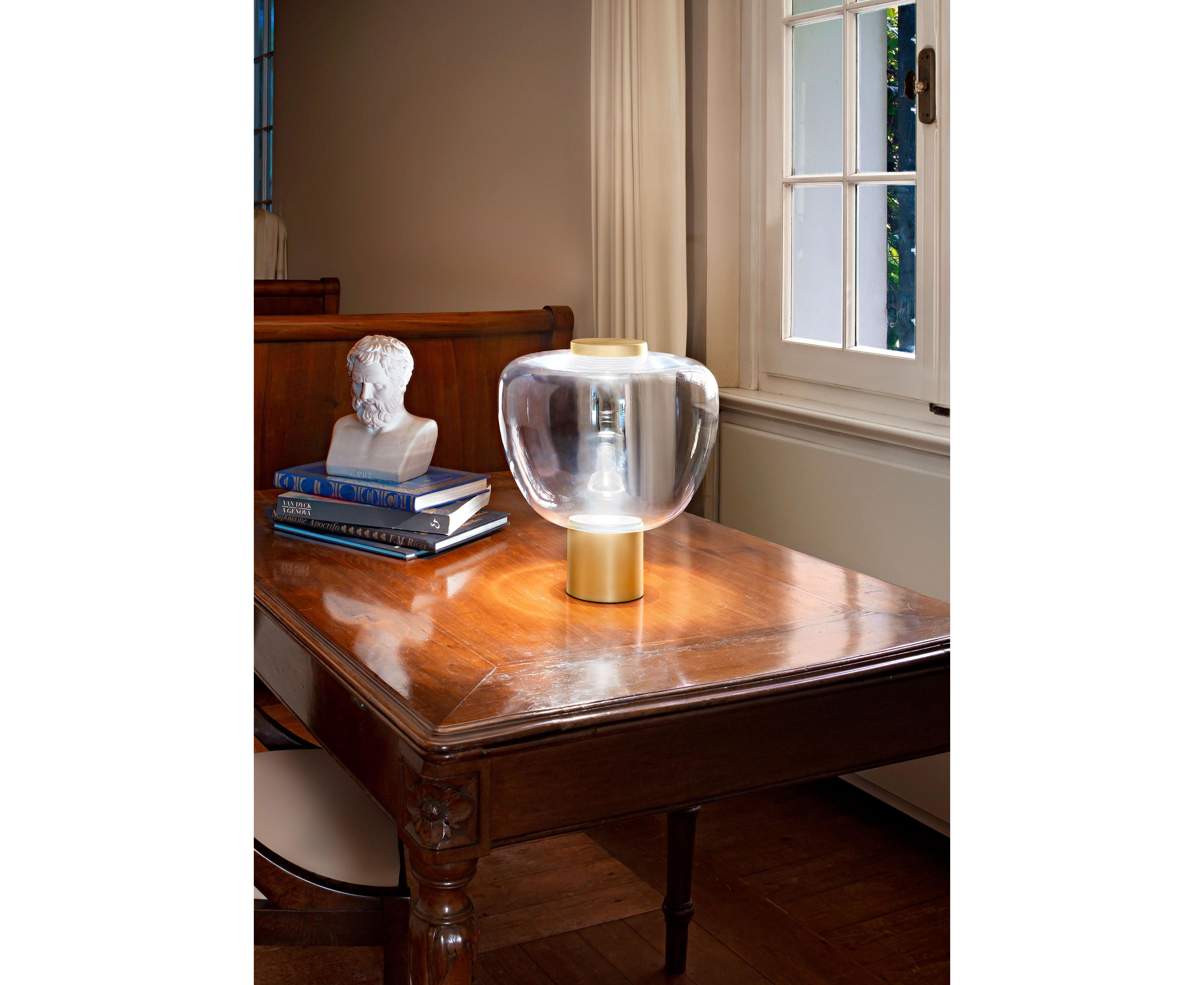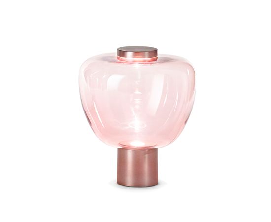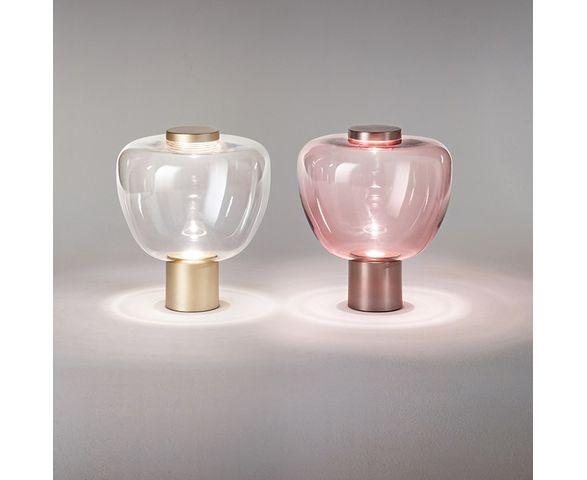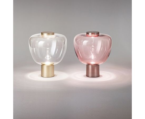 Мыльные пузыри, детские воспоминания. Светодиодный свет проходит через стеклянный пузырь, чтобы преломляться на зеркале в игре непрерывных отскоков. Стекло является не только рассеивателем, но и почти невидимым посредником между источником света и отражающим элементом. Простота и легкость стекла становятся основными чертами трех различных извилистых форм, обогащенных тонами хрусталя, дыма, янтаря и светлым аметистом.