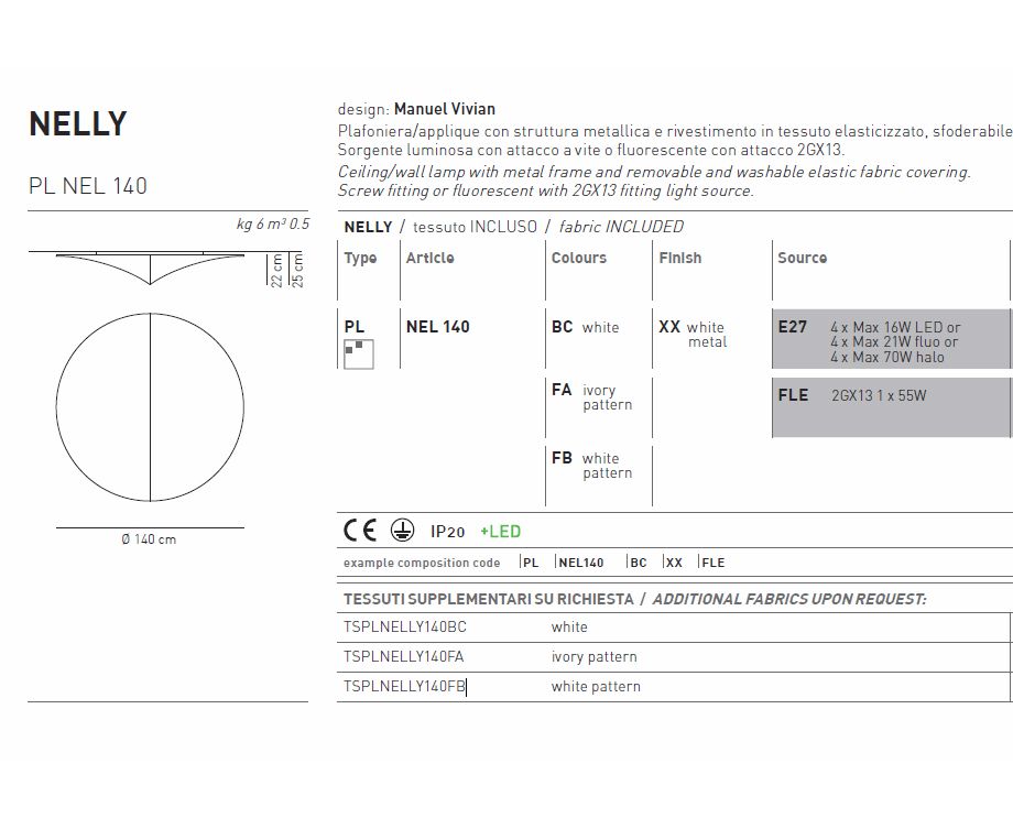 доступны цвета: FB - белый с узором (PLNEL140FBXXE27) и FA - цвета слоновой кости с узором (PLNEL140FAXXE2