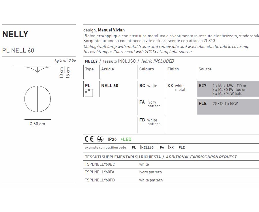 доступны цвета: FB - белый с узором (PLNELL60FBXXE27) и FA - цвета слоновой кости с узором (PLNELL60FAXXE2