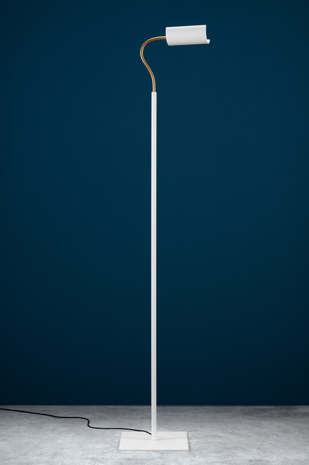 Торшер в этой линейке под названием U. F Flex, и он также имеет экран немного меньшего размера, чем у лампы Up. Отличительной особенностью этой версии является регулируемый изгиб из латуни и поворотный экран на 350°, что позволяет направлять свет туда, где это необходимо.